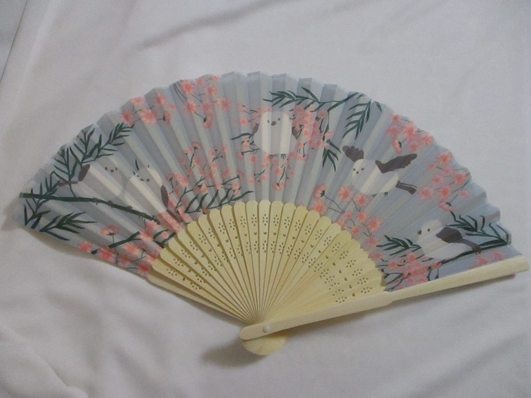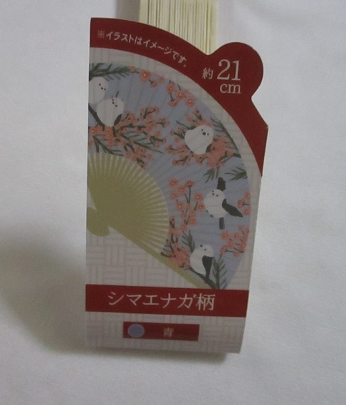 送料無料!【 シマエナガ 青 扇子 布タイプ 】21㎝ 天然竹 和 せんす うちわ 浴衣 着物