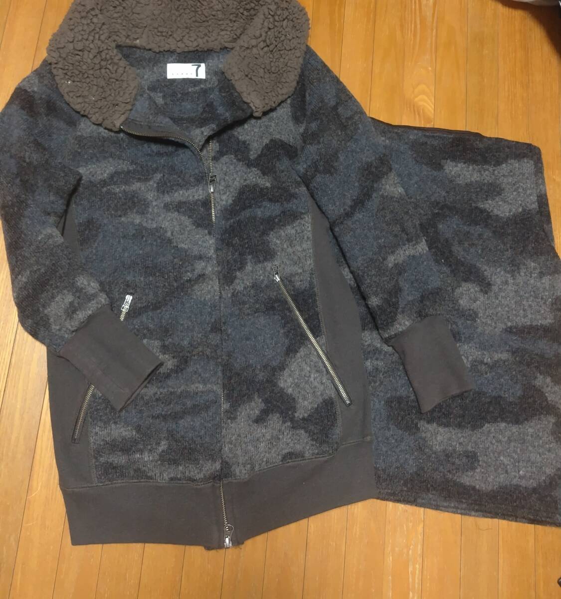 soeur7 スールセブン ジャケット 上下 セットアップ スカート ニットジャケット ボア襟 カモフラ 迷彩柄 9 M レディース 日本製