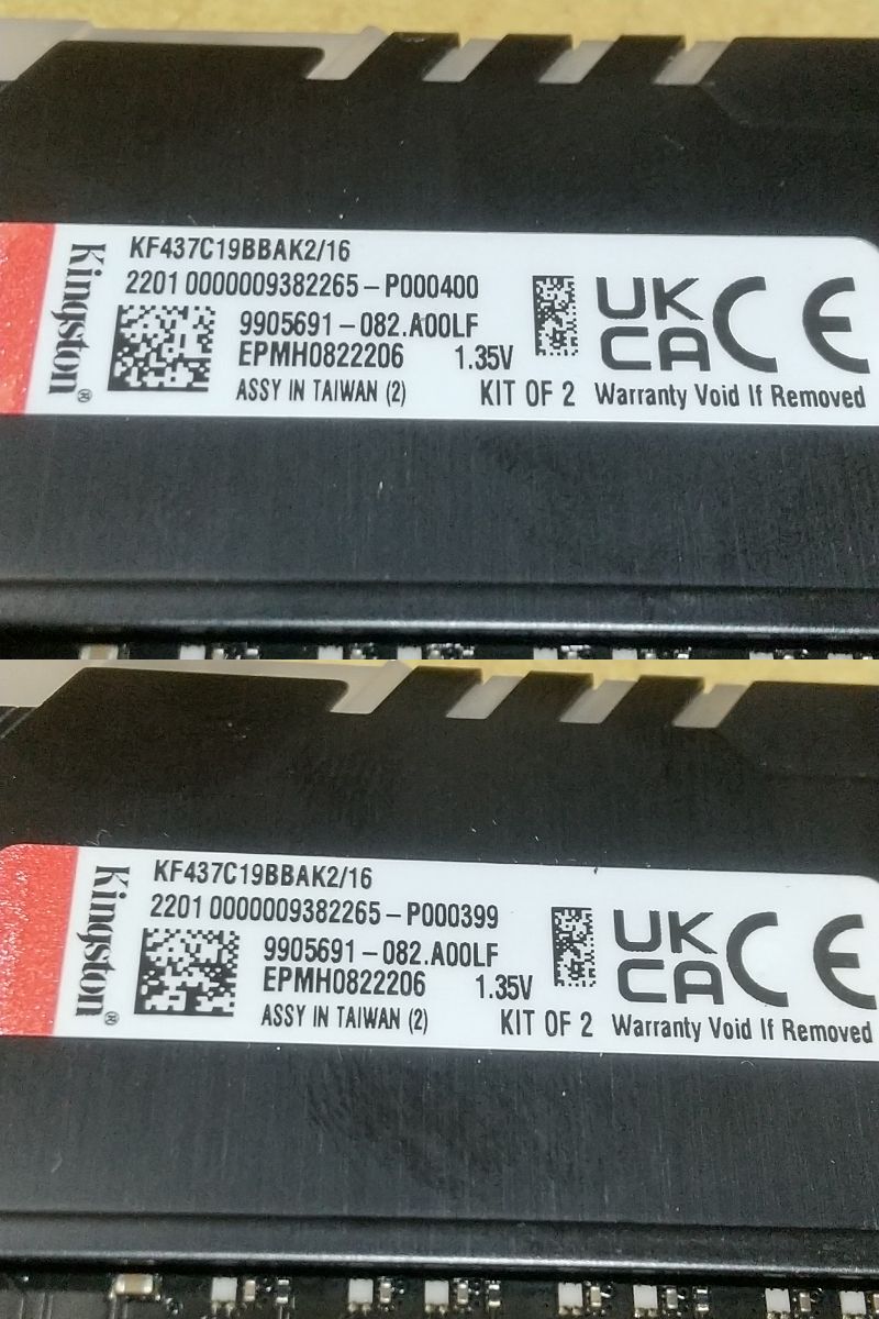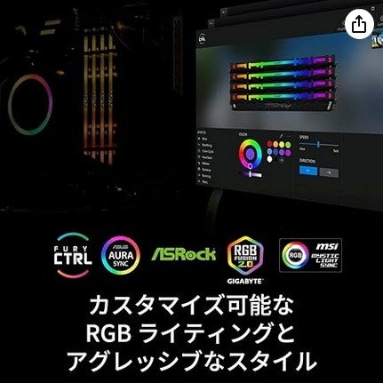 DDR4-3733 16GB [8GB×2枚] ・オーバークロックメモリです。 Kingston FURY Beast RGB 中古品