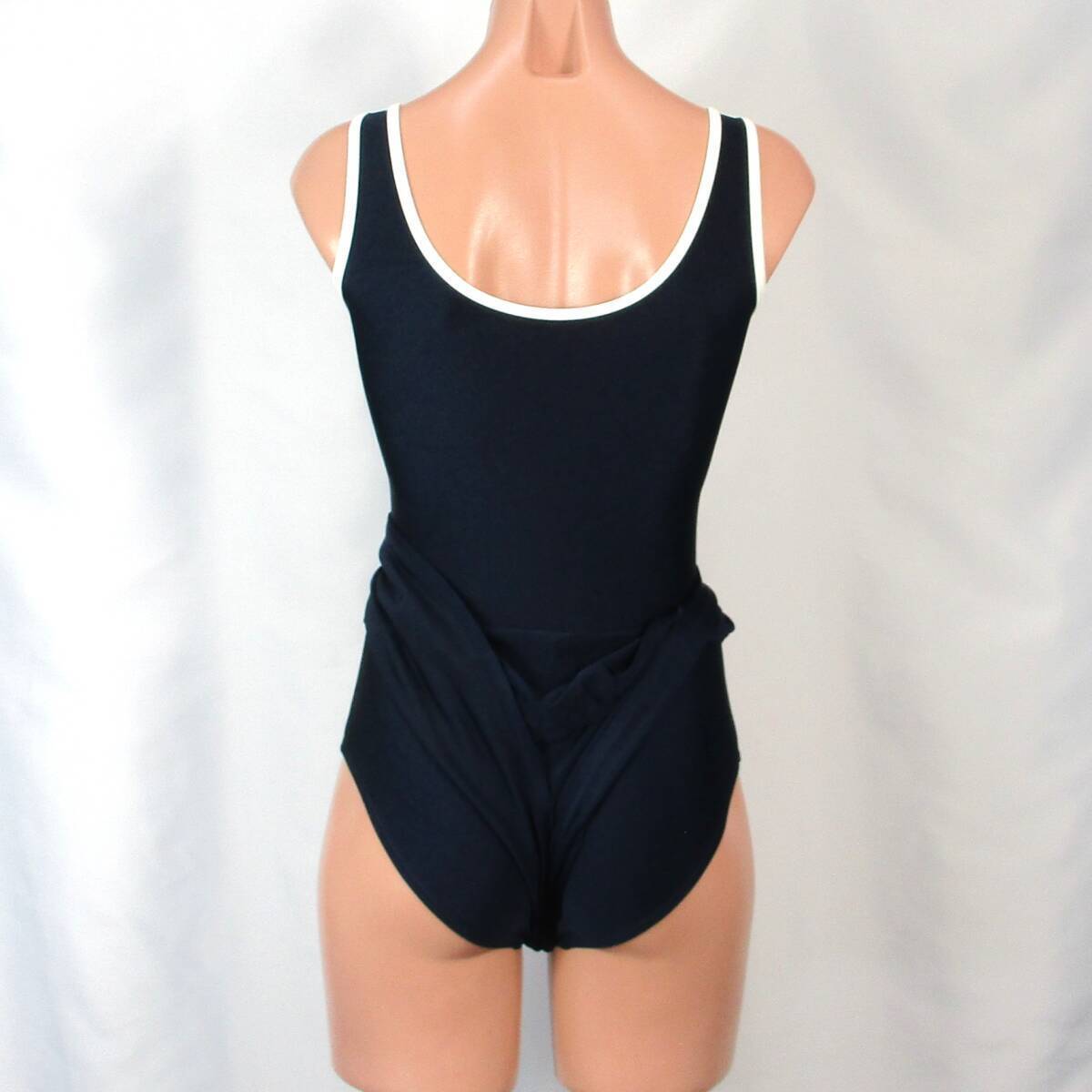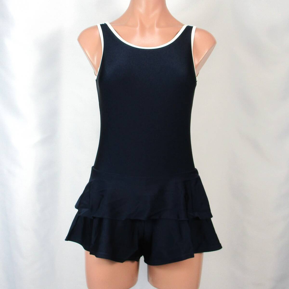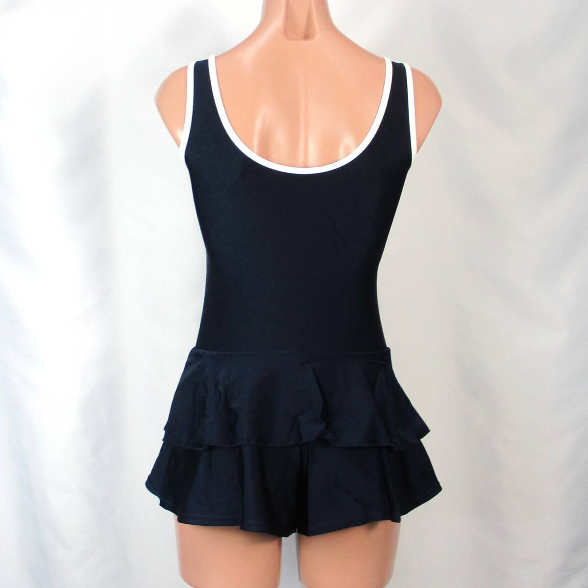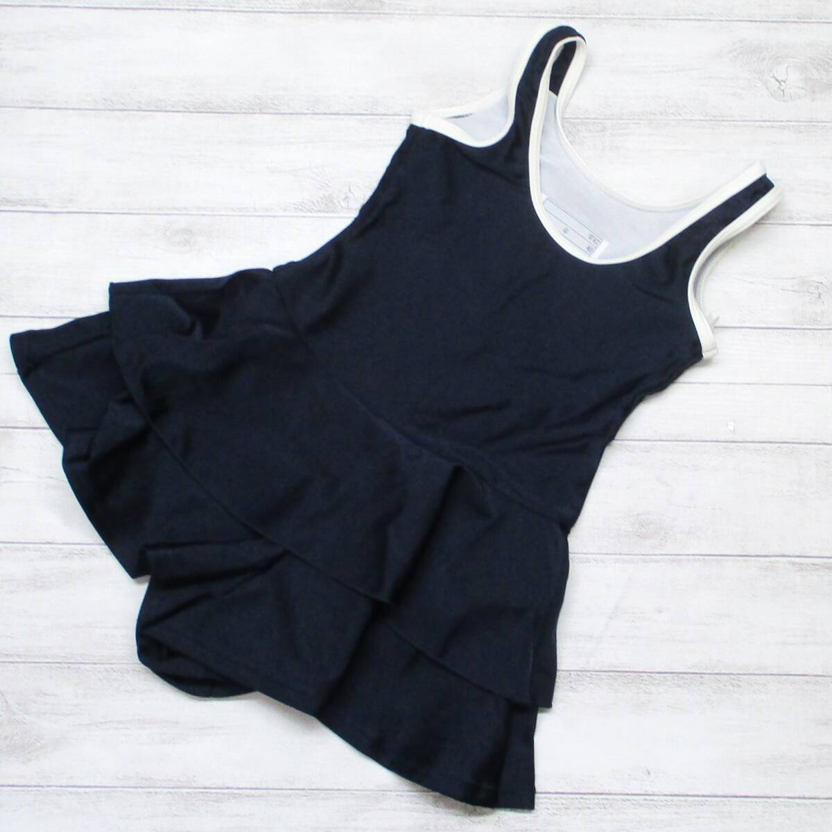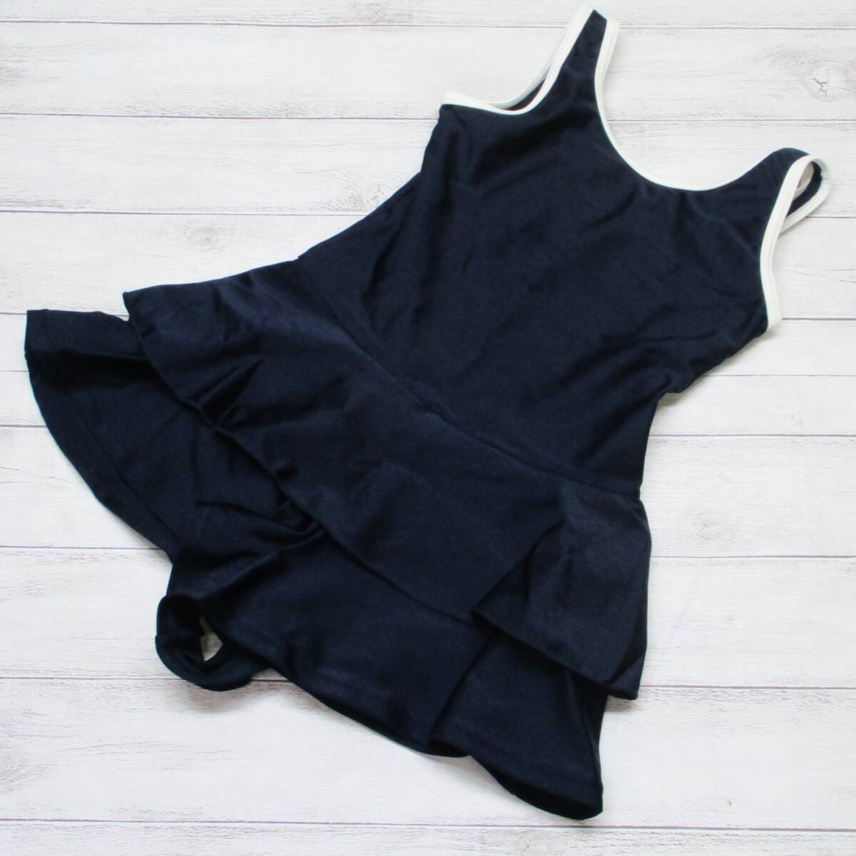 C5659★新品 スクール水着 ジュニア 120サイズ 白パイピング キュロット スカート つるすべ 紺 ネイビー 女子 ワンピース 水泳 プール