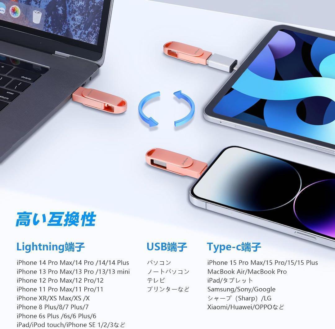 弊社のフラッシュメモリはすべてのiOSシステムシリーズに対応いたします。iPhone 15/iPhone 14 Pro Max/14 Pro/14 Plus/14/SE 3/13 Pro Max/13 Pro /13/13 mini /12 Pro Max/12 Pro/12 /SE 2 /11 Pro Max/11 Pro/11 /XR/XS Max/XS /X /8 Plus/8/7 Plus/7/SE 1/6s Plus /6s/6 Plus/6/ iPad Pro/ iPad Air/ MacBook(Pro/Air)/ iPad mini/ iPad/ PC /ノートパソコン/ Type-Cスマホなどと互換性があります。