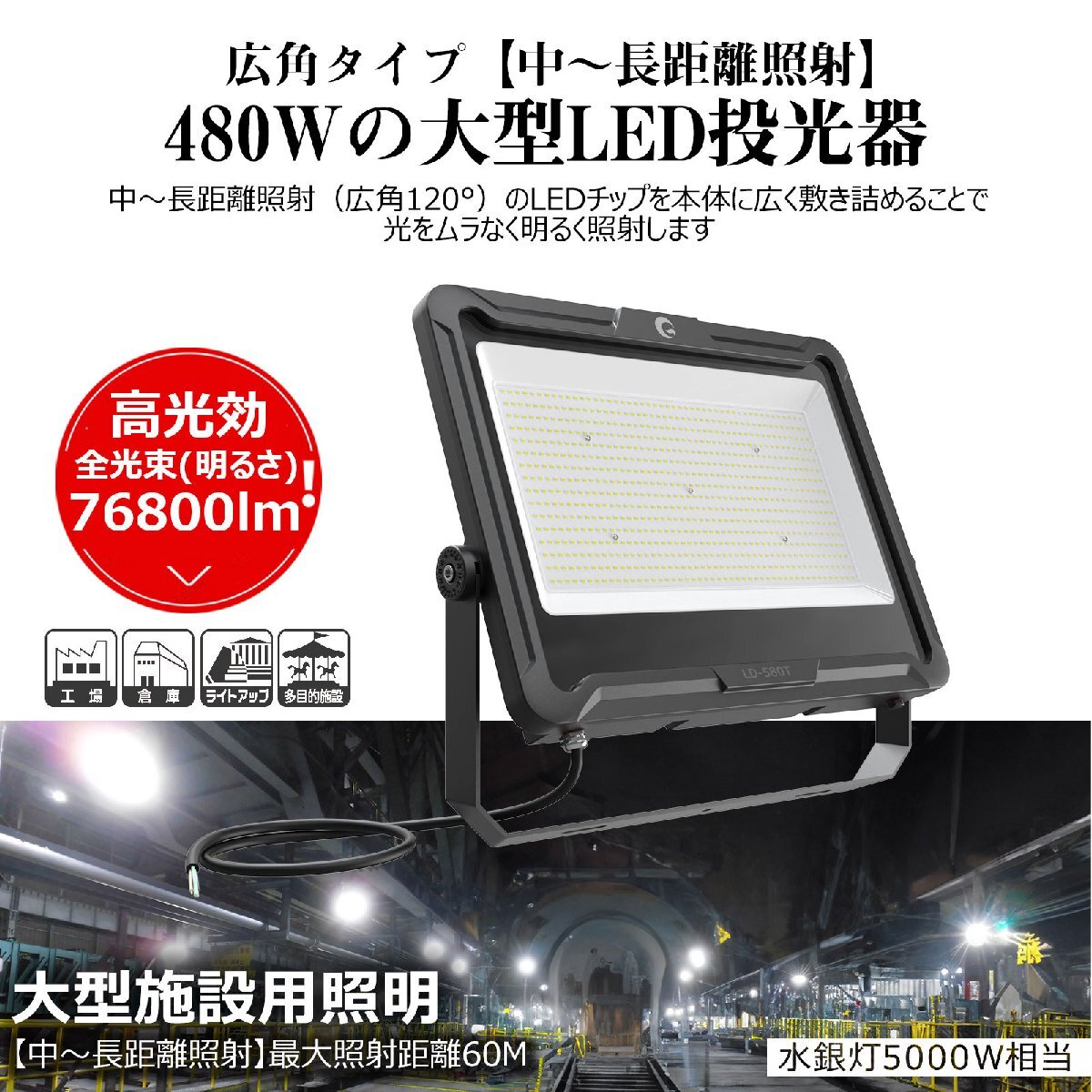 | 全光束(明るさ) | 約76800lm | 発光色 | 昼白色(5000K) |