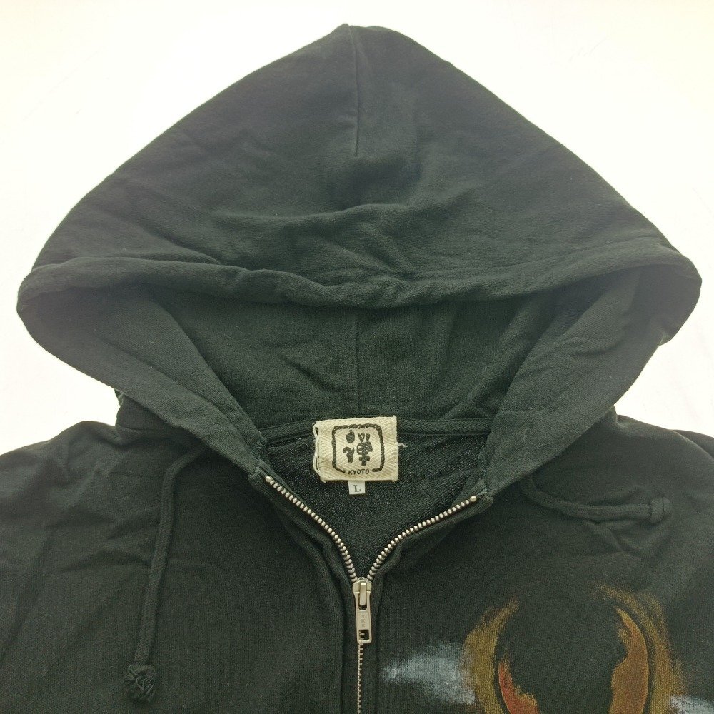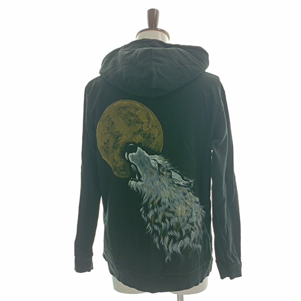 | 禅 ZEN 和柄 ペイント フーディー ジップアップパーカー サイズL 満月 オオカミ 夜 ブラック メンズ カジュアルファッション 中古 |