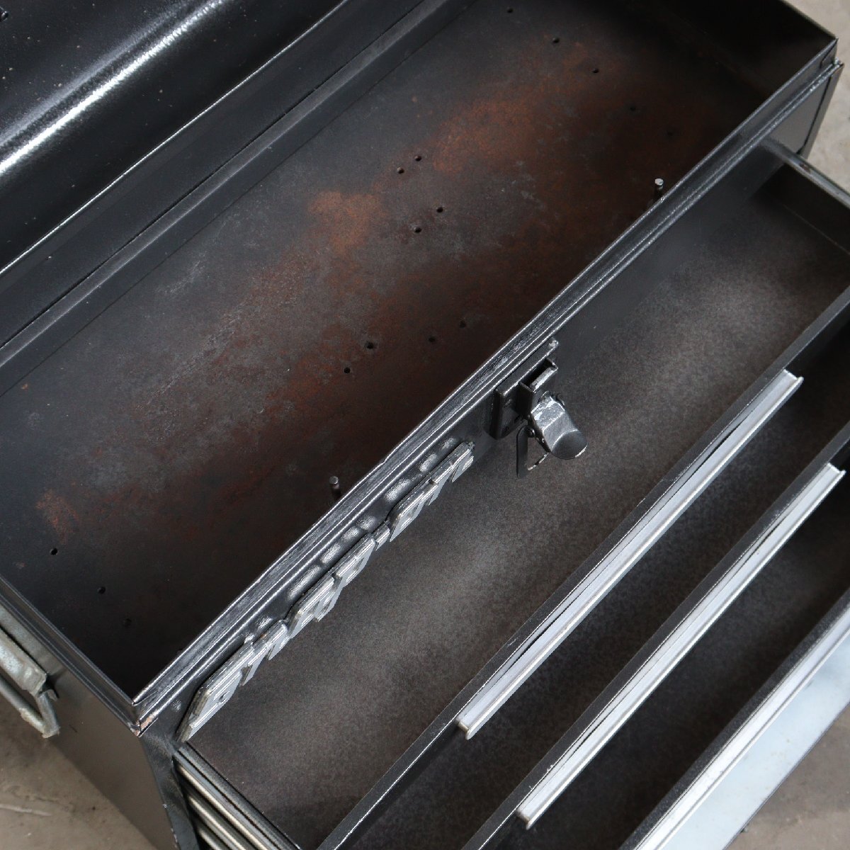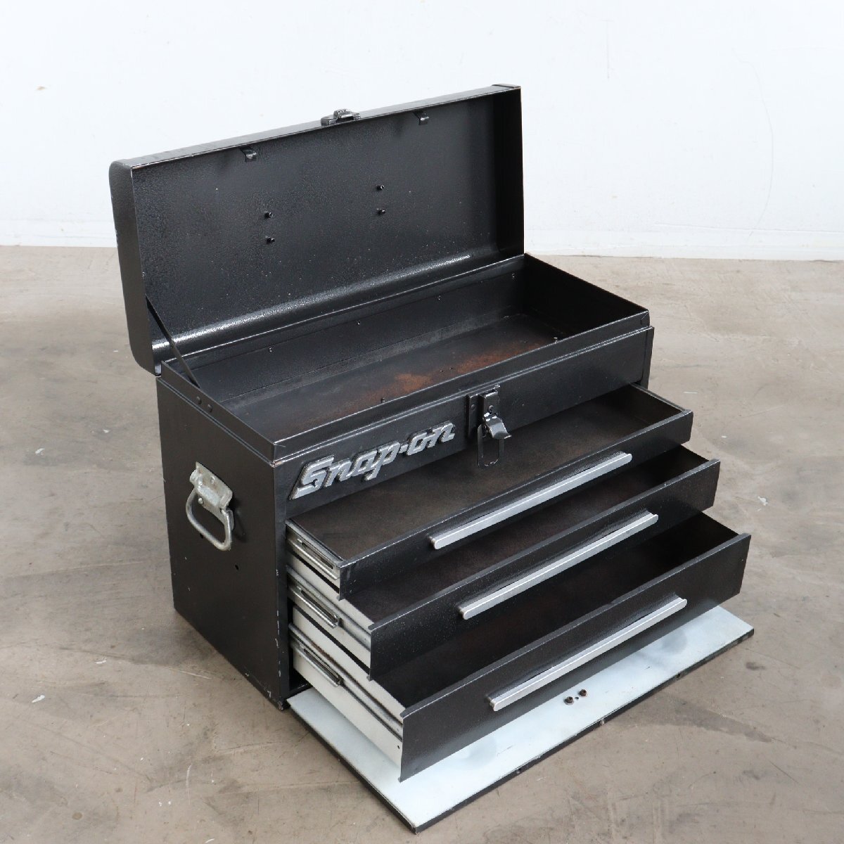 | 商品説明 explanation | アメリカの代表的な大手工具メーカー「Snap-on」のツールボックスです。 経年による使い込まれた雰囲気がヴィンテージらしさ満載です。 ガレージや店舗などにいかがでしょうか。 ※ふたを開けると下の扉が開き、引き出しが使えるようになっています。 |