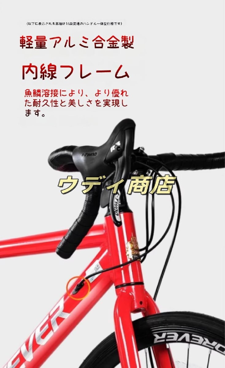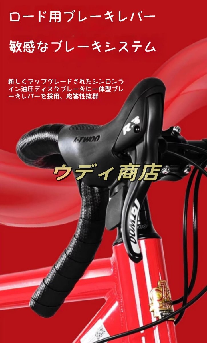 【高速トランスミッションシステム】:ロードバイクには16段階のトランスミッションシステムが搭載されており、スムーズなシフト操作を実現します。指先で確実に操作でき、安全な走行をサポートし、速度と制動力を調整できます。
