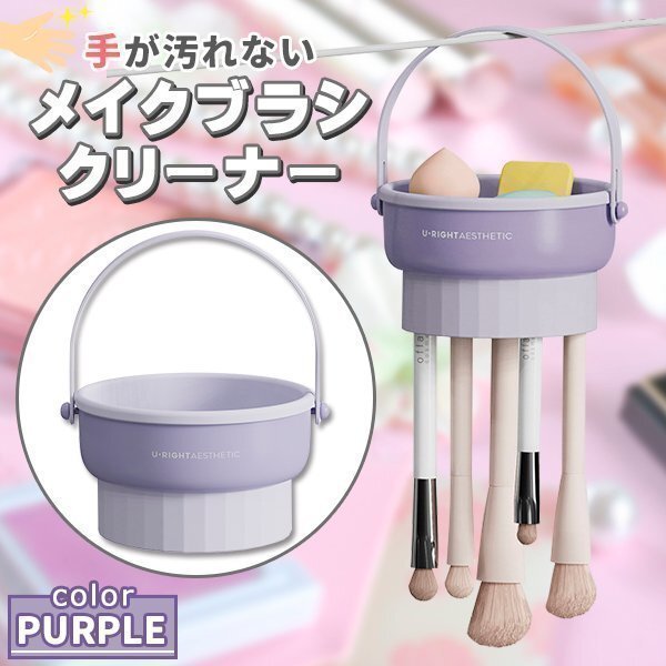 メイクブラシ メイクブラシクリーナー メイクブラシスタンド メイクブラシ洗浄 乾燥スタンド 化粧筆収納 パープル