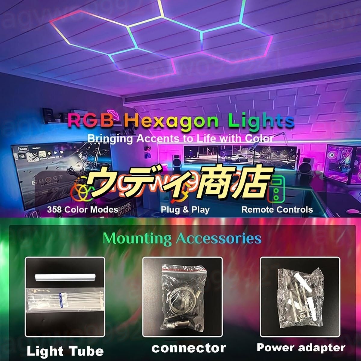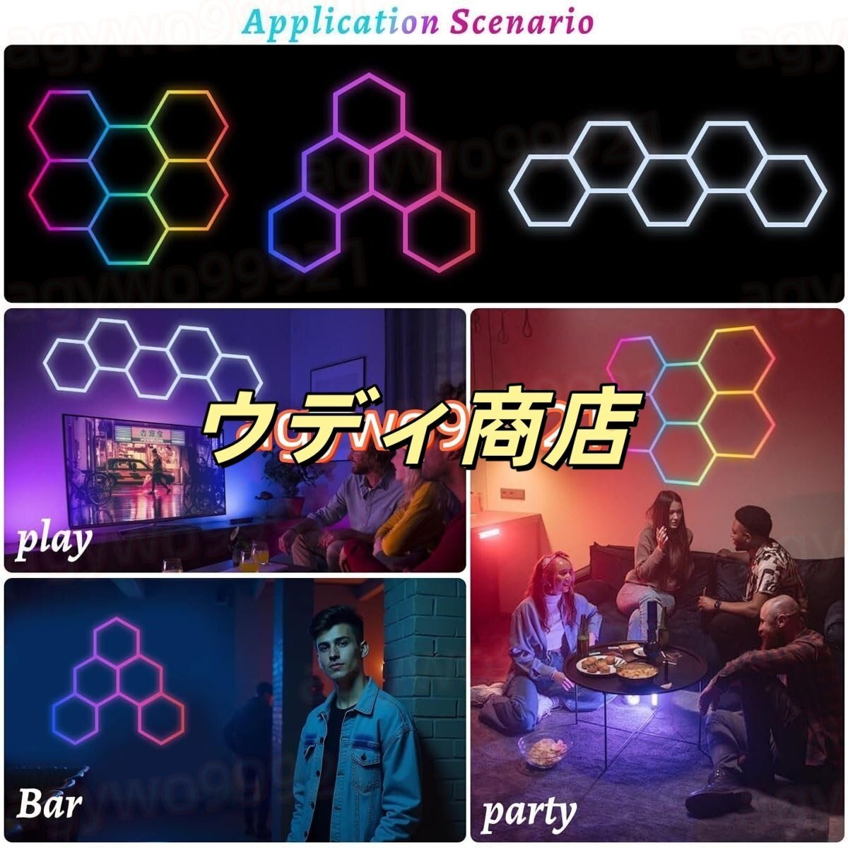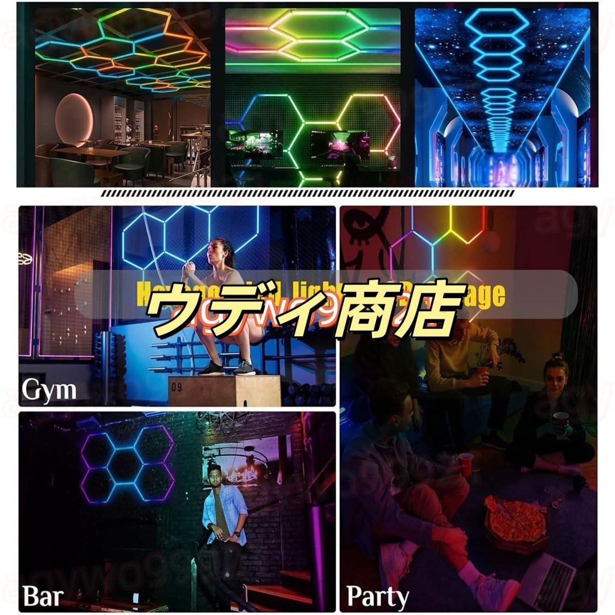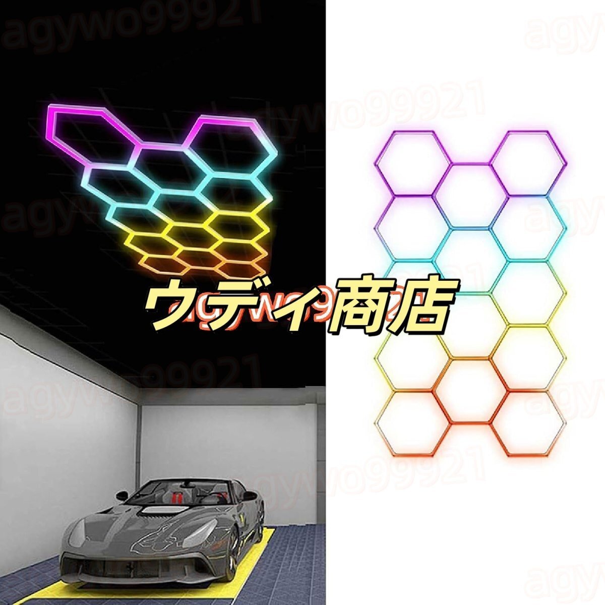 RGB 六角形ガレージ ライト: RGB 六角形ライトには 358 以上のカラー モードがあり、カスタマイズされたカラー エクスペリエンスを実現します。明るさと速度を自由に調整して素晴らしいエクスペリエンスを実現できます。APP で制御でき、パーティー、イベント、または鮮やかな