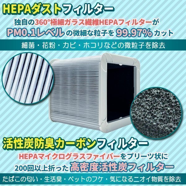 細菌、花粉、カビ、ホコリなどの微粒子を除去。