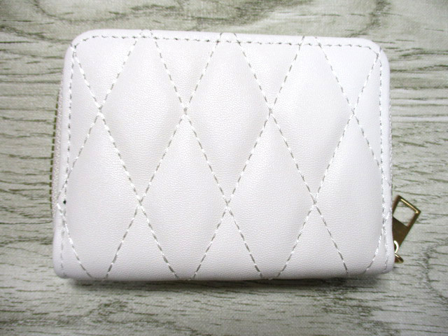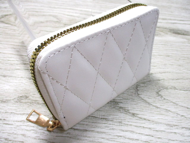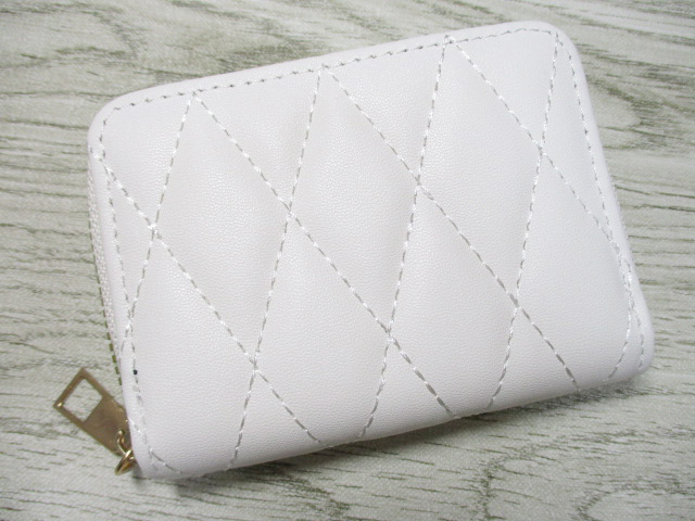 格安 新品 財布 レディース 二つ折り ミニ財布 コンパクト ラウンドファスナー財布 シックな大人のキルティングデザイン PU素材 ホワイト