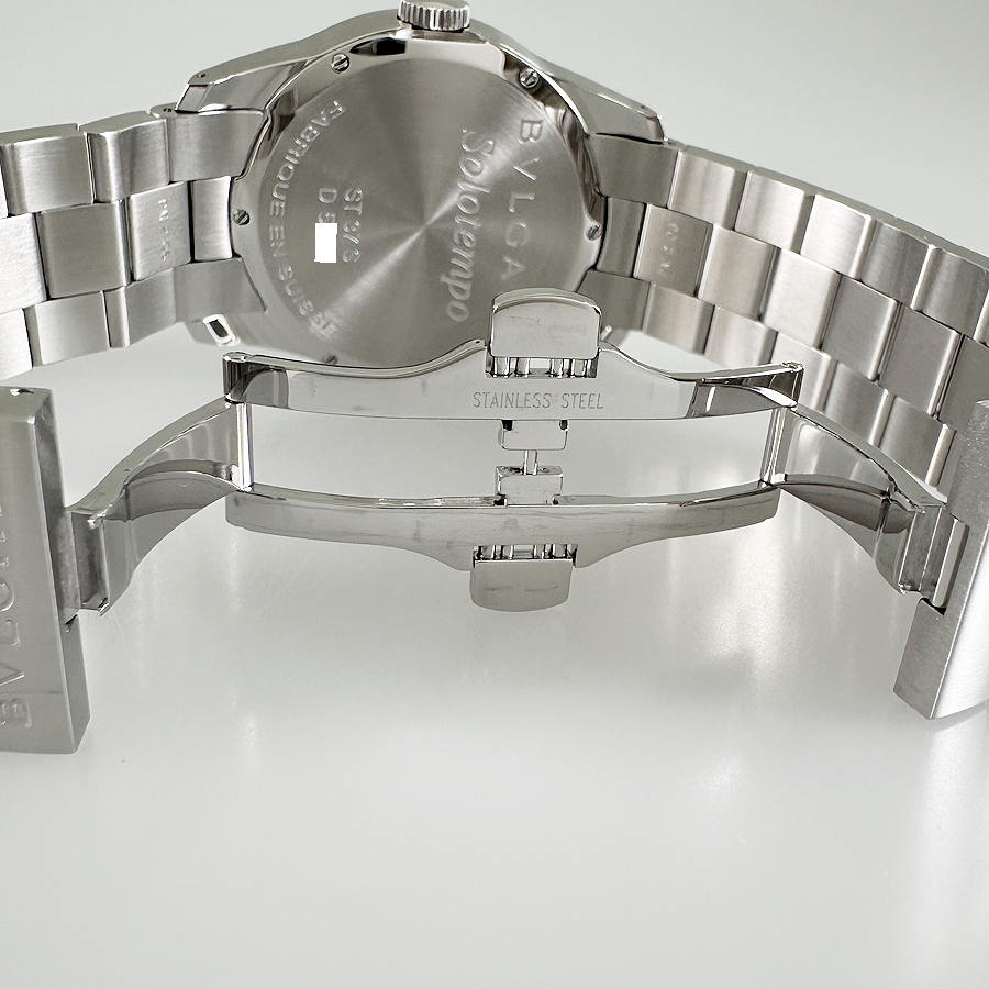 | ■商品名 ブルガリ BVLGARI ソロテンポ Ref.ST37S SS クォーツ レディース 腕時計 ■管理番号 ss-4219254740001 ■コンディション 【B】 多少の汚れ、傷があり少し使用感の感じられる状態 ≪ランク表≫ N:新品・未使用で付属品がすべて揃っている状態 S:新品同様の状態で買い取った商品 A:わずかな浅いキズ、汚れはあるが大変綺麗な状態 B:多少の汚れ、傷があり少し使用感の感じられる状態 C:目立った汚れ、キズのある状態 D:かなりの使用感、汚れ、キズのある状態 ■商品の状態・説明 【ケース】 ベゼルやラグ、リューズやエンドピースに細かな薄傷がございますが、概ね綺麗な状態でございます。 【ブレス】 微細な薄傷が僅かにございます。 バックルの中折れ部分に擦れや細かな薄傷が僅かにございます。 若干のブレスの伸びがございます。 【風防/文字盤】 綺麗な状態でございます。 【特記事項】 電池交換済の商品になります。 ■ブランド ブルガリ ■モデル ソロテンポ ■ジャンル レディース 腕時計 ■型番 Ref.ST37S ■製造番号 D5xxx ■サイズ ケース径横:37mm 腕周り最大:20cm 重量:135.8g サイズ表はこちら ■素材 ケース:SS ブレス:SS ■カラー 文字盤:ブラック ケース:シルバー ブレス:シルバー ■付属品 ・弊社保証書 ・純正外箱 ・純正内箱 ・国際保証書(未記載) ■仕様 ムーブメント:クォーツ 動作状況:正常稼働 電池交換:2025年10月 電池交換済 【ご注意ください】 ●画像によっては実際の色と異なる場合がありますので、あらかじめご了承下さい。 ●この商品は実店舗にて店頭販売を行っております。在庫管理には万全を期しておりますが、万が一在庫切れの場合は何卒ご容赦くださいませ。 ●スマホでご覧いただいている方は、パソコン版で詳細をご確認頂いてからのご購入ご検討を、よろしくお願い致します。 ※クオーツ時計の場合 内蔵されている電池は動作確認用のモニタ電池です。 通常の期間より短い期間で電池切れになる場合がございます。 商品出荷時の検品で電池切れを確認した場合には、電池交換の後に出荷させて頂きます。 尚、商品発送に2~3日頂く場合がございます。予め、ご了承下さいませ。 ◆保証の詳細はこちら◆ ■商品に関するお問い合わせ先 キングラム 心斎橋別館 電話番号:06-6251-9020 メールアドレス:shinsaibashi.2nd@bestbuy.co.jp 営業時間:11:00~19:30 定休日:不定休 ※営業時間外のお問合わせはご対応を致しかねます。 あらかじめ、ご了承くださいませ。 |