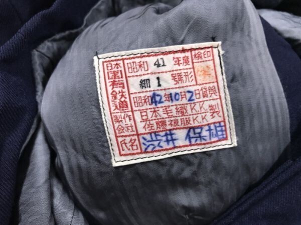 日本国有鉄道 国鉄 現JR 昭和41年度製 1966年 当時物 レトロ 古着 鉄道グッズ ブレザー オフィサー ジャケット メンズ 細1号 紺 です。