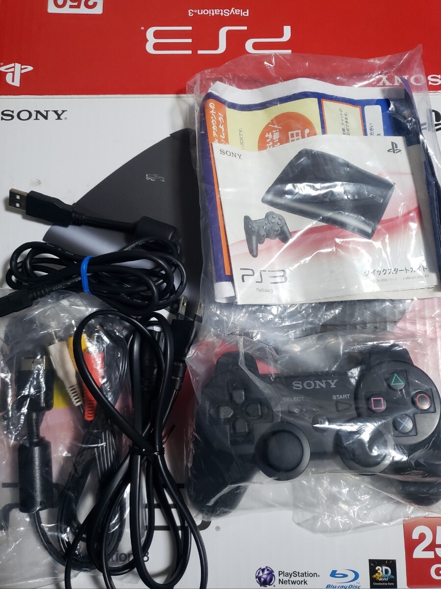 付属品は本体、箱、冊子類(シワあり)、コントローラー、AVケーブル、電源ケーブル、USBケーブルです