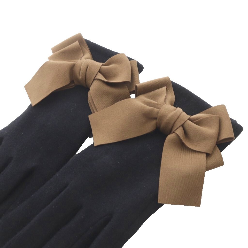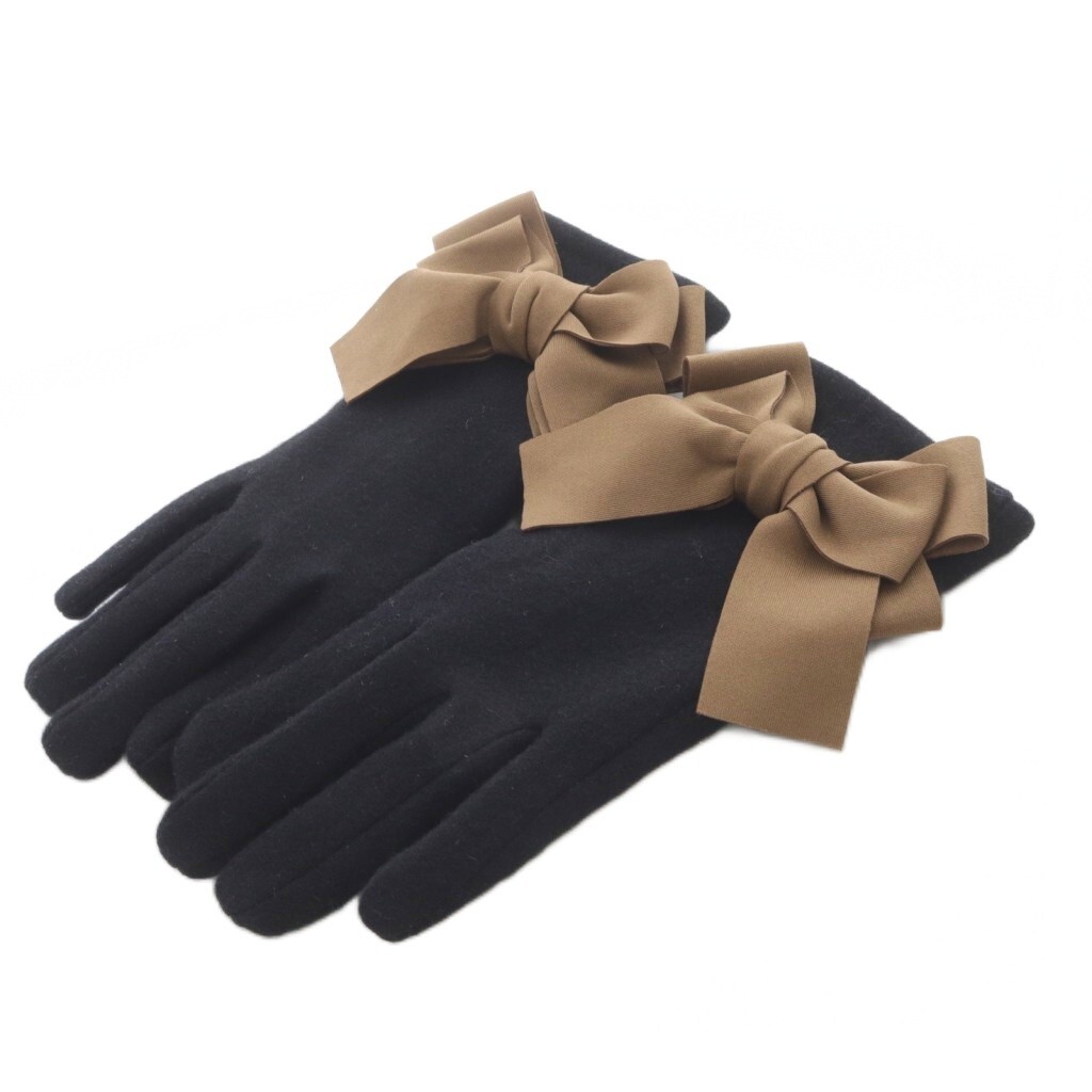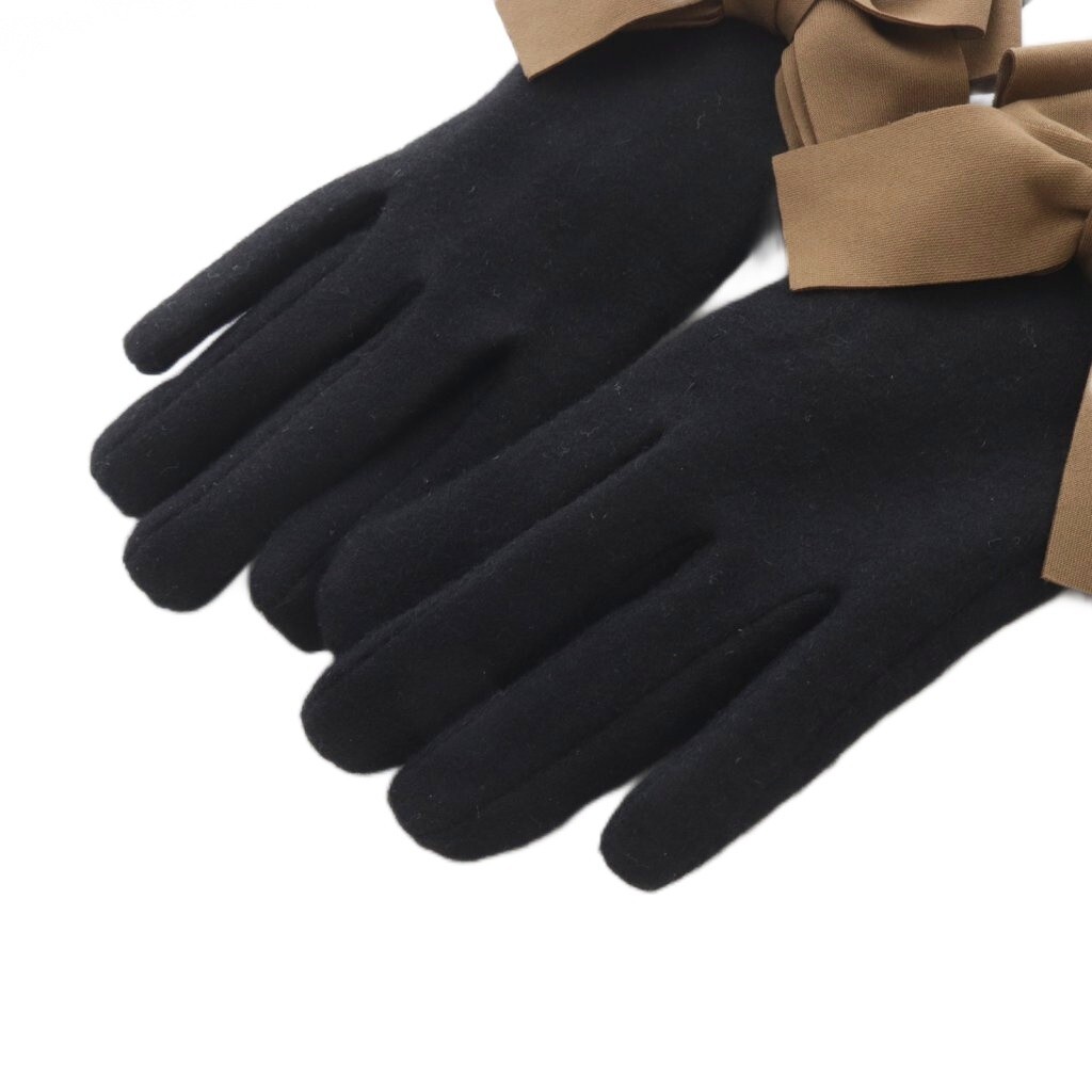 エムズグレイシー M'S GRACY ウール混 リボングローブ 手袋 21cm 黒 ブラック 茶色 ブラウン /SR ■SH レディース