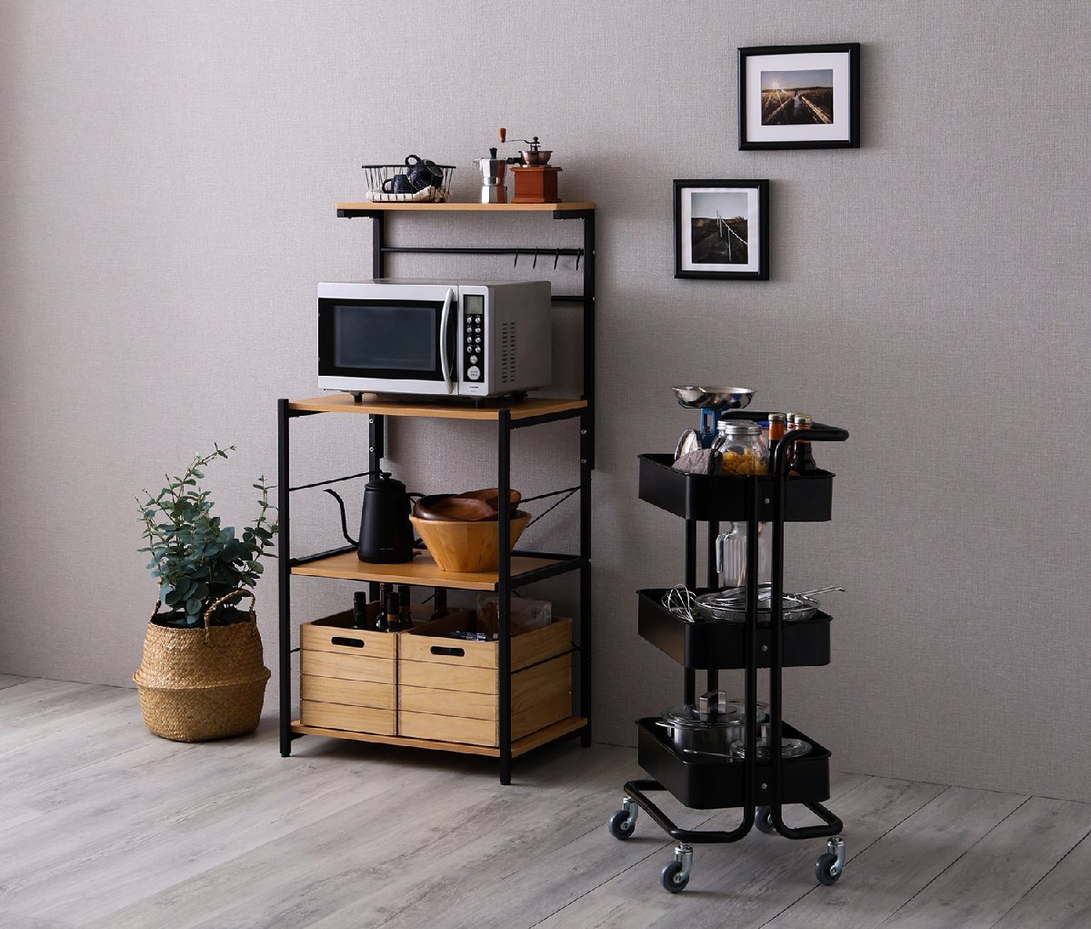 キッチン家電や雑貨をまとめて収納できるヴィンテージレンジラック!