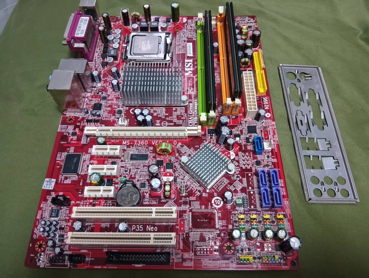 MSI P35 NEO(Ms-7360 Ver.1.0) LGA775対応ATXマザー Core2Quad Q8200 2.33GHzとPC2 6400 4GBメモリ付き 動作確認済ですがジャンク扱い