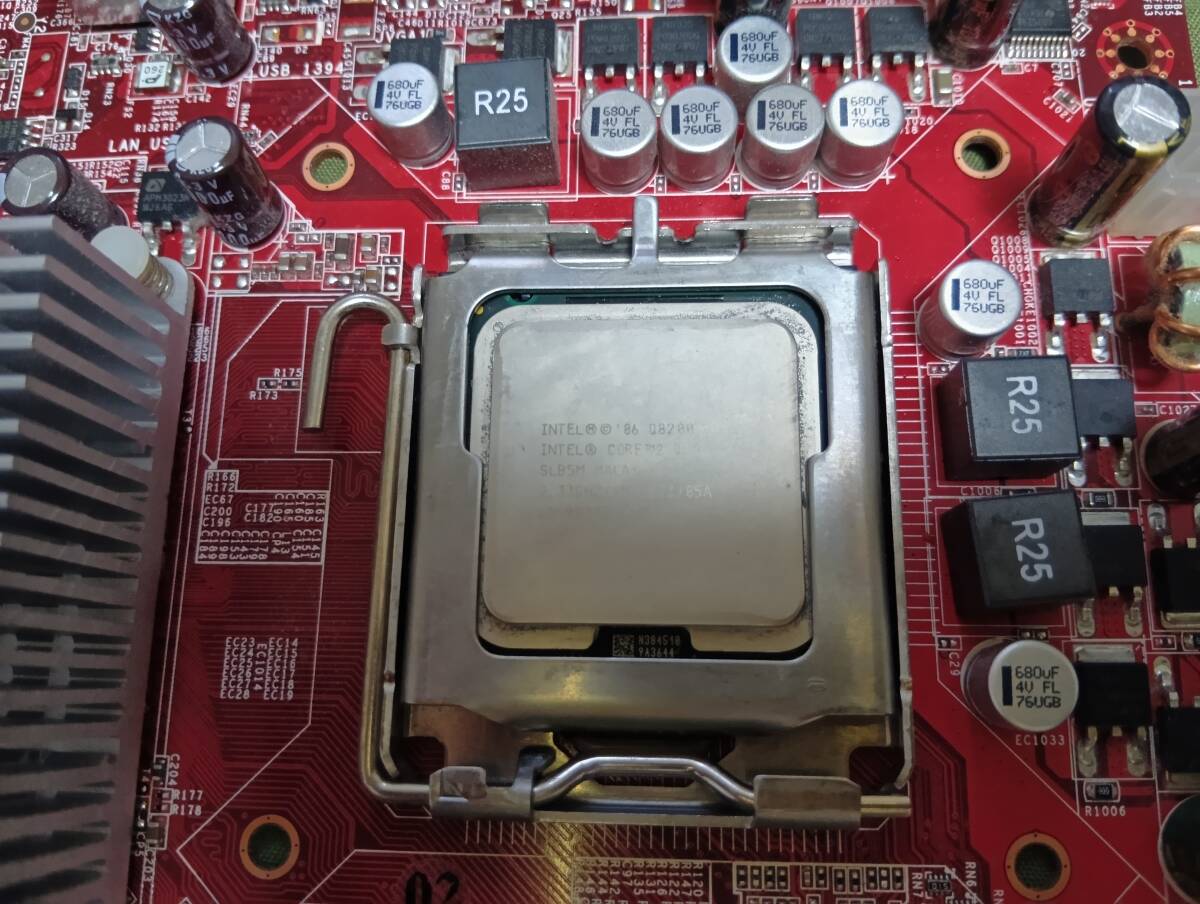 ・不良コンデンサー交換後の動作確認品です。長期的な動作は未確認となります。またおまけでCore2Quad Q8200 2.33GHz、DIMM2GB 2枚を付けて出品となります。バックパネル付きです