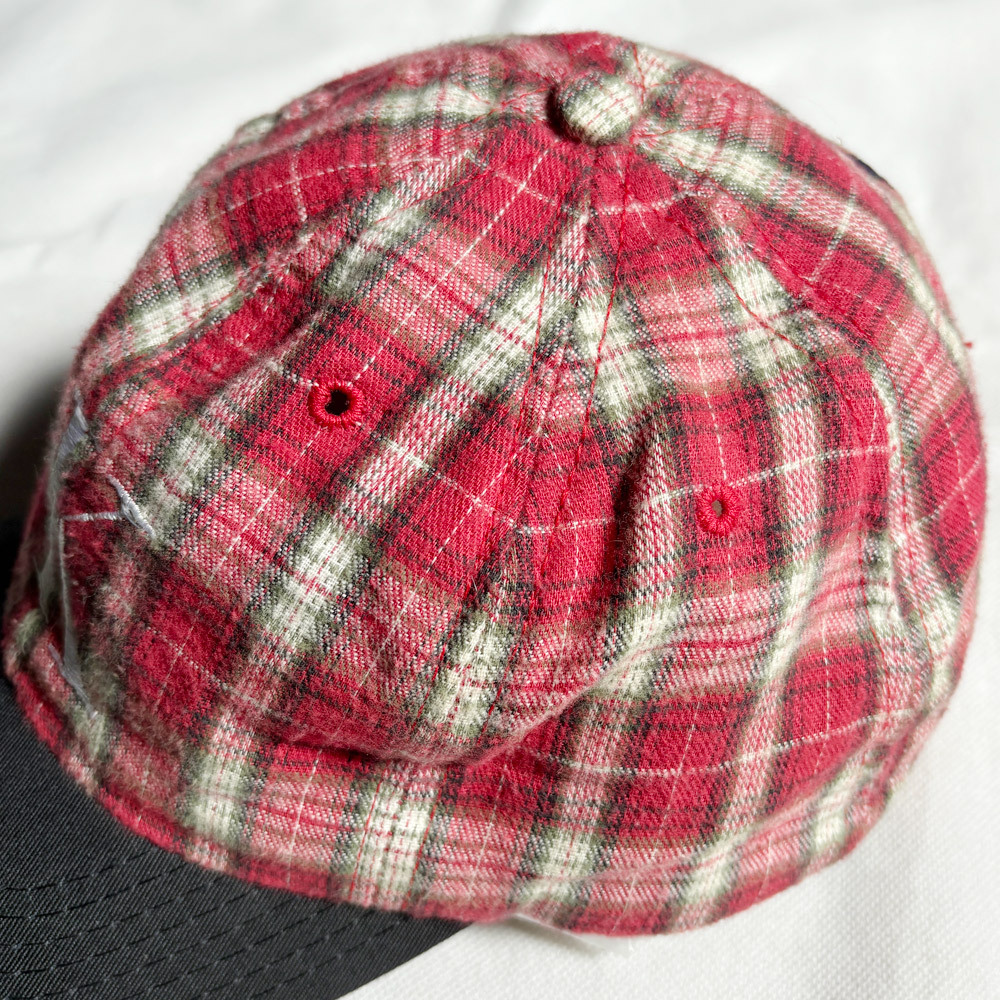 こちらはブリム部分がブラックのコットンツイル 、ボディ部分がレッドベースのチェックコットンネル素材を採用。カルバンクラインのキャップ類は、単色タイプがほとんどですが、こちらは珍しいチェック柄とブラックカラーのバイカラータイプというレアな一品。