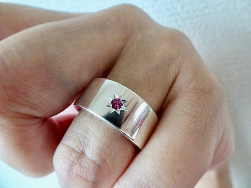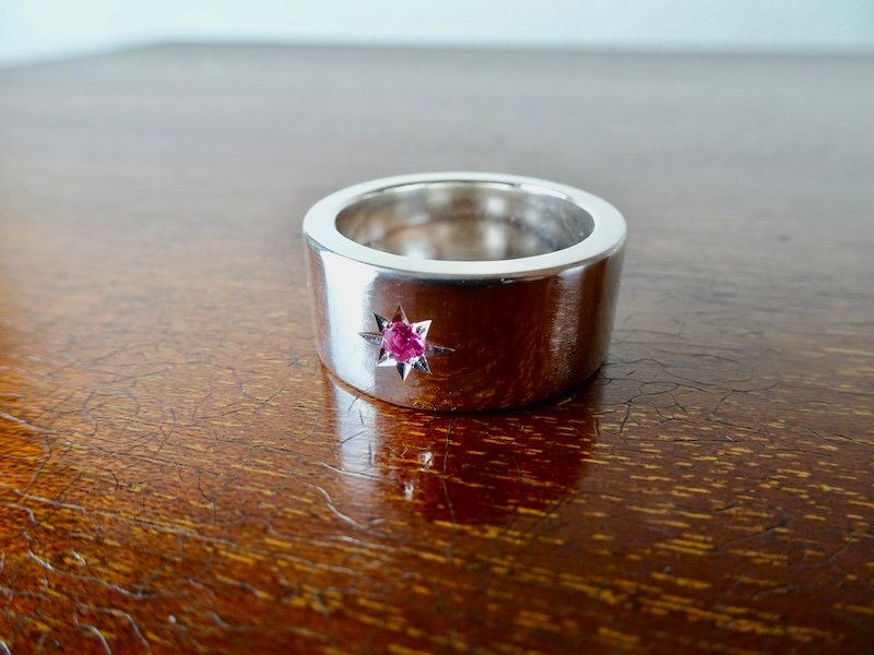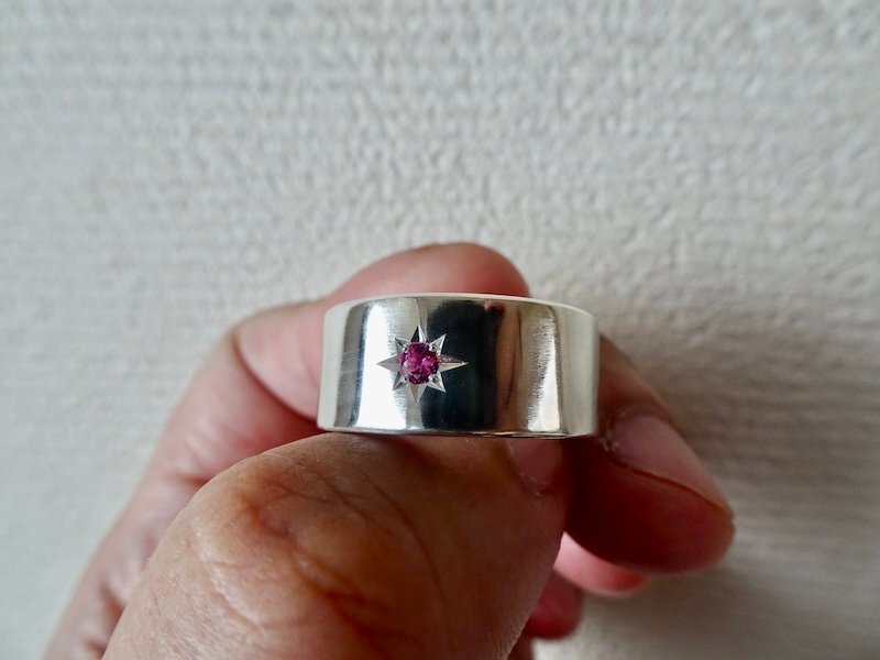 | ■ ■ 商品名: 『一つ星2.7mmピンクスピネル、幅1cm、平打リング』 ■ ■ |