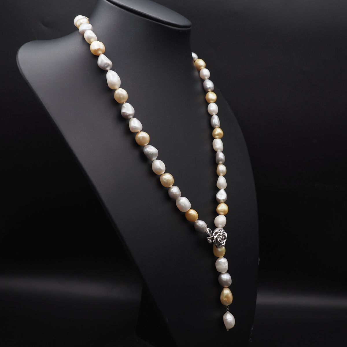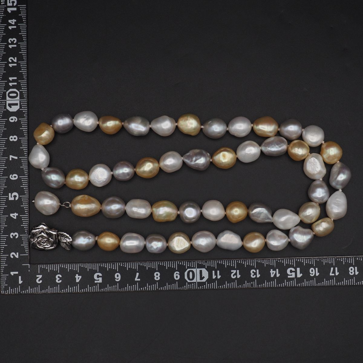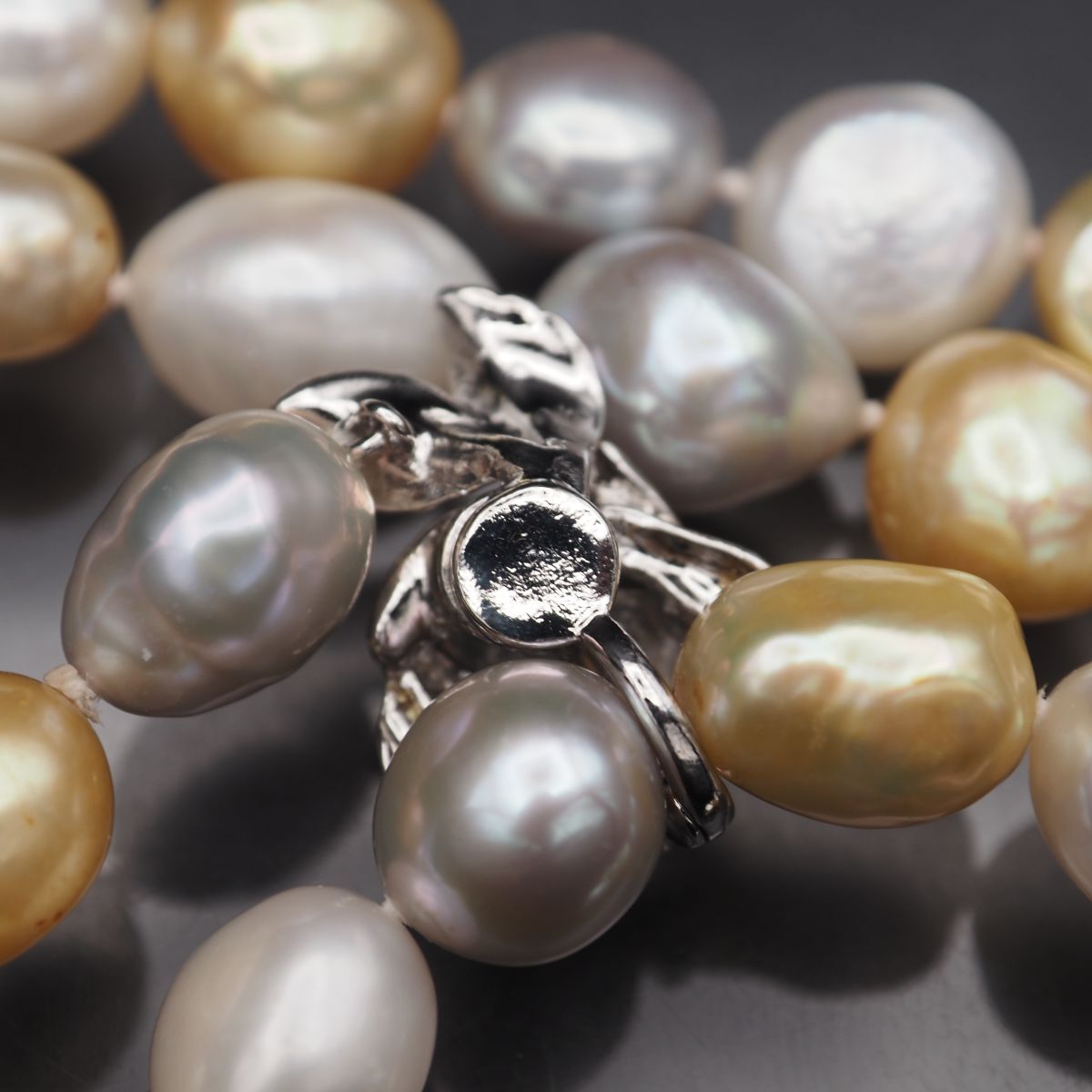 G339 淡水真珠 バロックパール ネックレス マルチカラー デザイン シルバー 6月誕生石