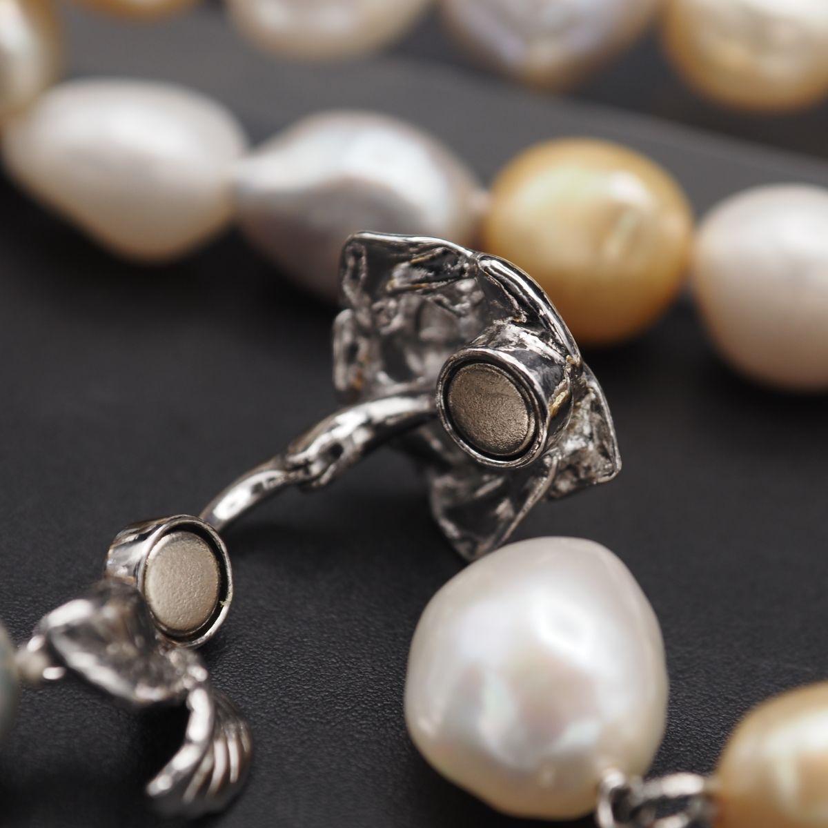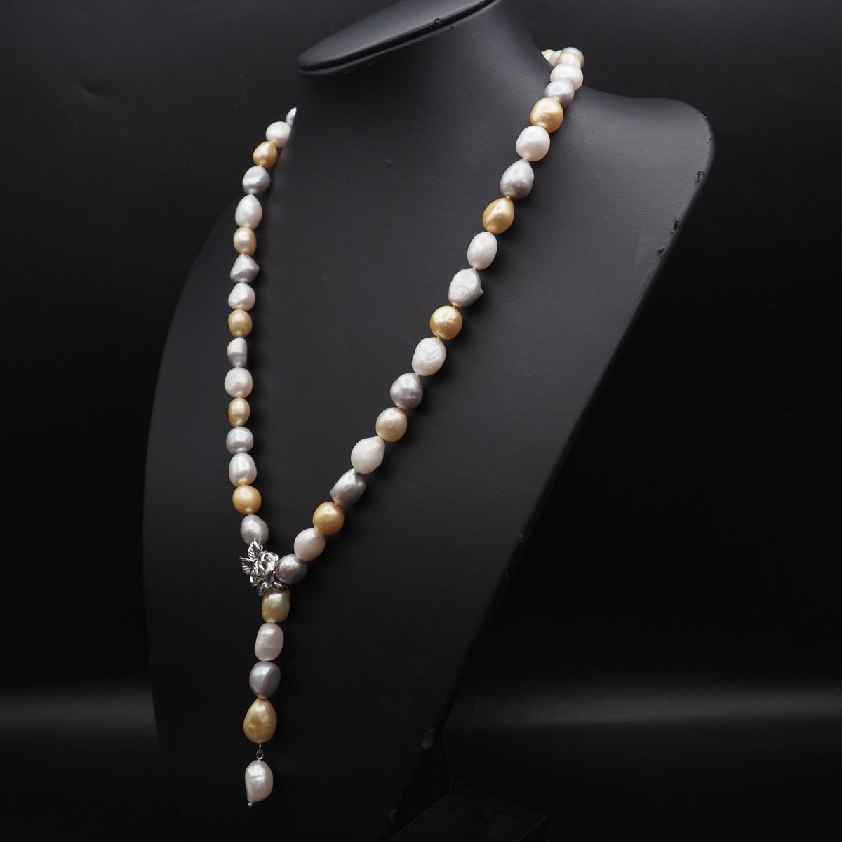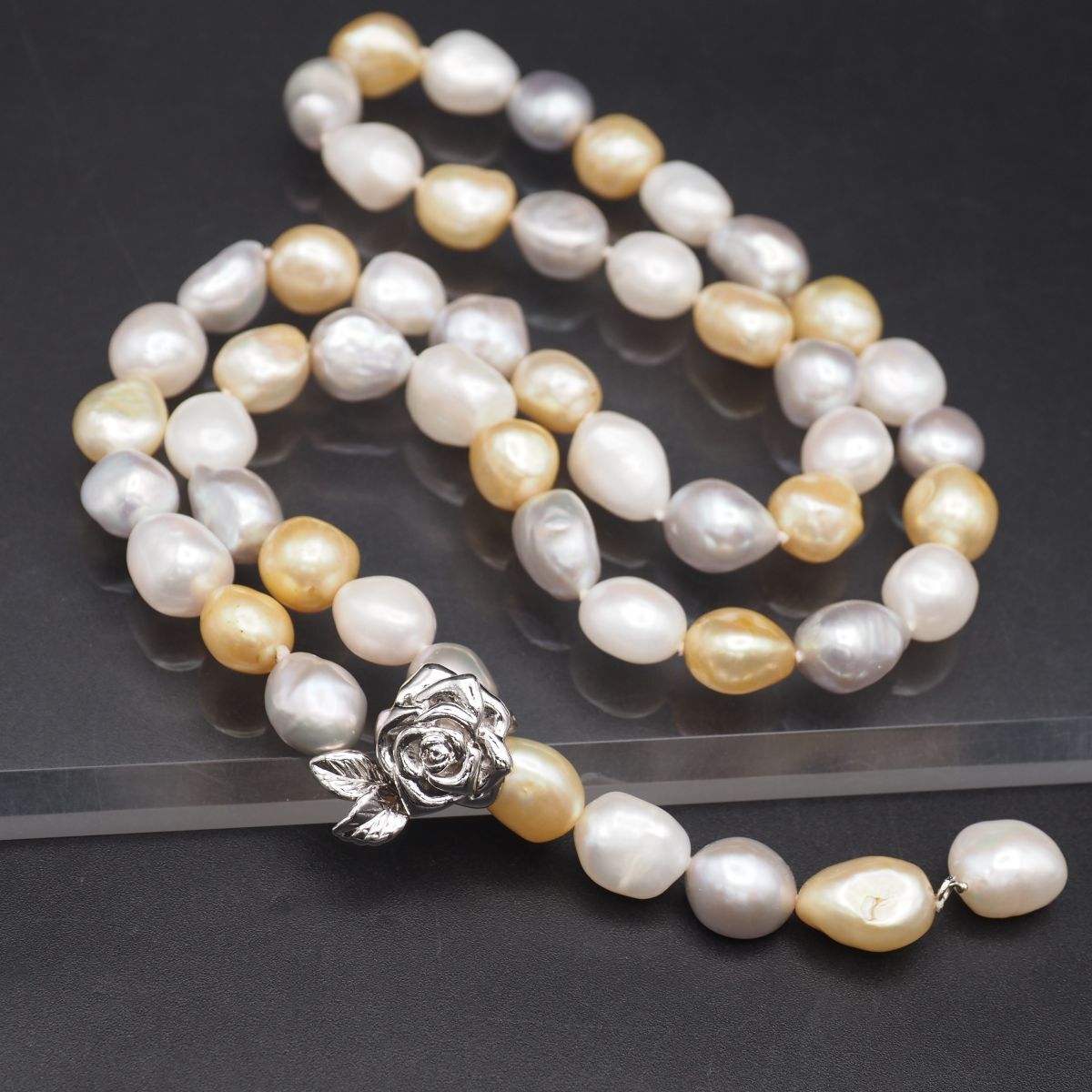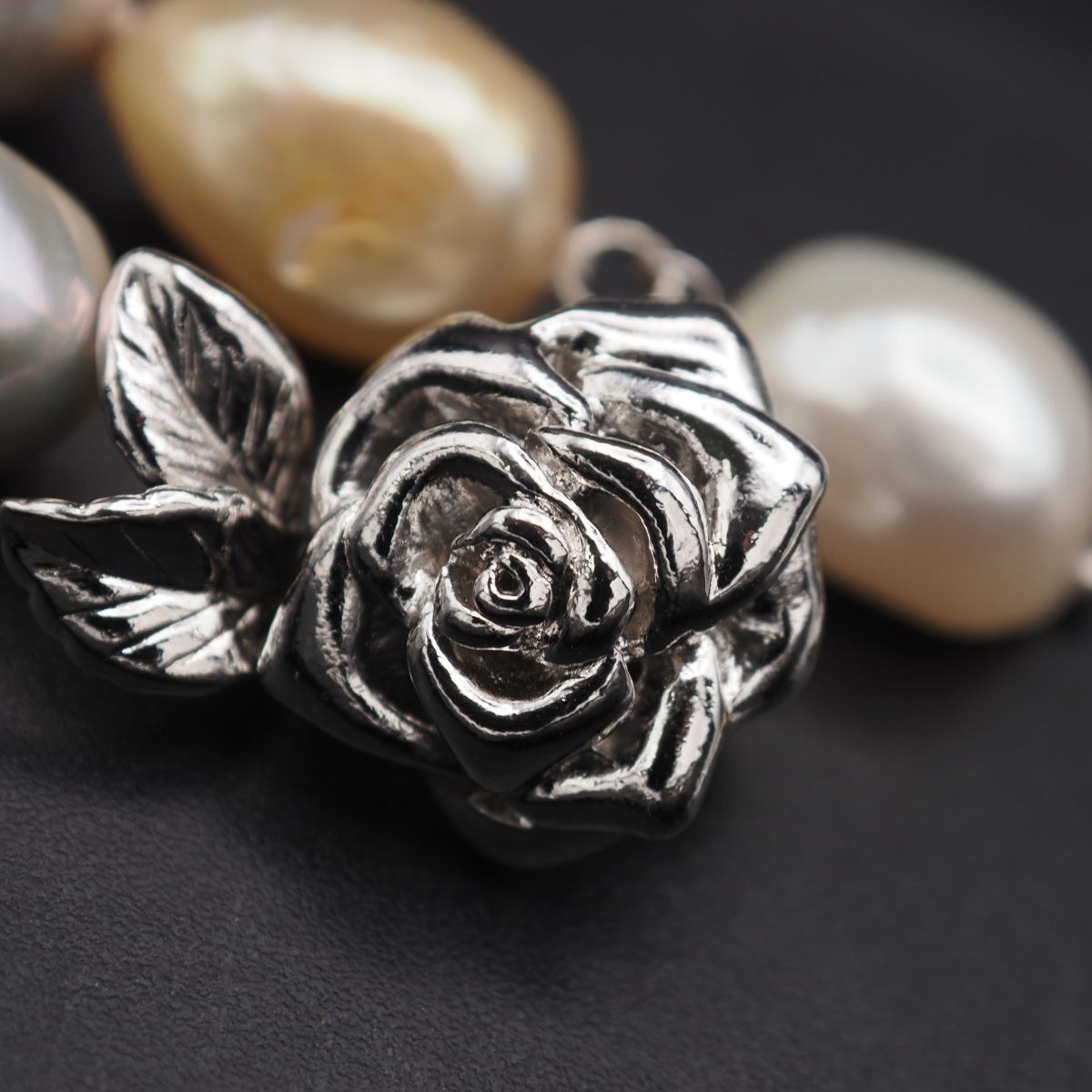 G339 淡水真珠 バロックパール ネックレス マルチカラー デザイン シルバー 6月誕生石