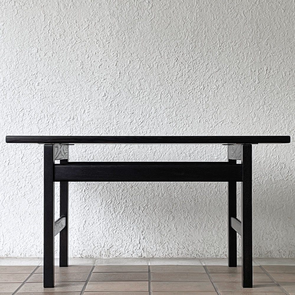 | コメント | 良質なデザインを、シックなカラーリングで楽しめるビンテージのコーヒーテーブルです。 デザインは北欧はデンマークを代表する名プロダクトデザイナー、ハンス・J・ウェグナー。 デンマークの優れたハンドクラフトと、協業するメーカーの得意とする分野を巧みに用いる手法、そして良い意味で中庸で、タイムレスなデザインは今もなお多くの人を魅了して止みません。今回はゲタマ社 | GETAMAによるビンテージのコーヒーテーブル。 サレスコ(Salesco)と呼ばれるウェグナーによるデザインプロダクトを製造・販売するネットワークにおいて、ゲタマ社はデイベッドやソファ、イージーチェア、そしてそれと組み合わせて用いられるテーブル類を多く手掛けています。 質感豊かなオーク材の雰囲気を良く表した1台。 ストレートな印象のフレームワークながら、脚部や幕板には柔らかな面取りが施され、穏やかな空気感を邪魔しない静謐な雰囲気を作り出してくれます。 テーブルという実用的な家具でありながら、ブラックカラーによって引き立てられるモダンシルエットは正にウェグナーの真骨頂。気になる方はどうぞこの機会にご検討下さいませ。 ※当ショップは、主にリサイクル品を取り扱っております。基本的にUSED品である事をご理解頂き、ご入札をご検討下さいませ。 |