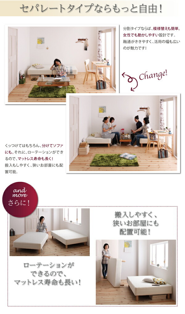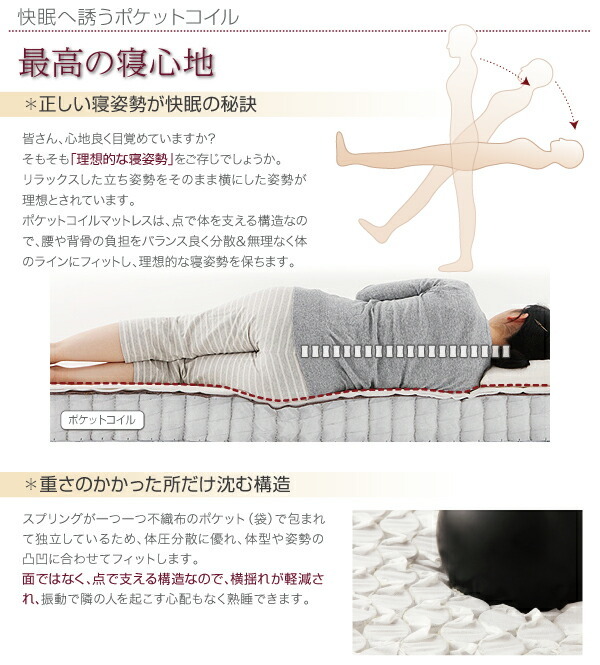 新・国産ポケットコイルマットレスベッド マットレスベッド 分割タイプ ダブル 脚22cm