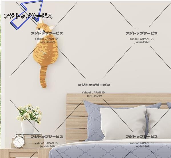 壁掛け時計 INS風 しっぽ振る猫 猫 芸術 時計 寝室用 リビング インテリア かわいい z2203