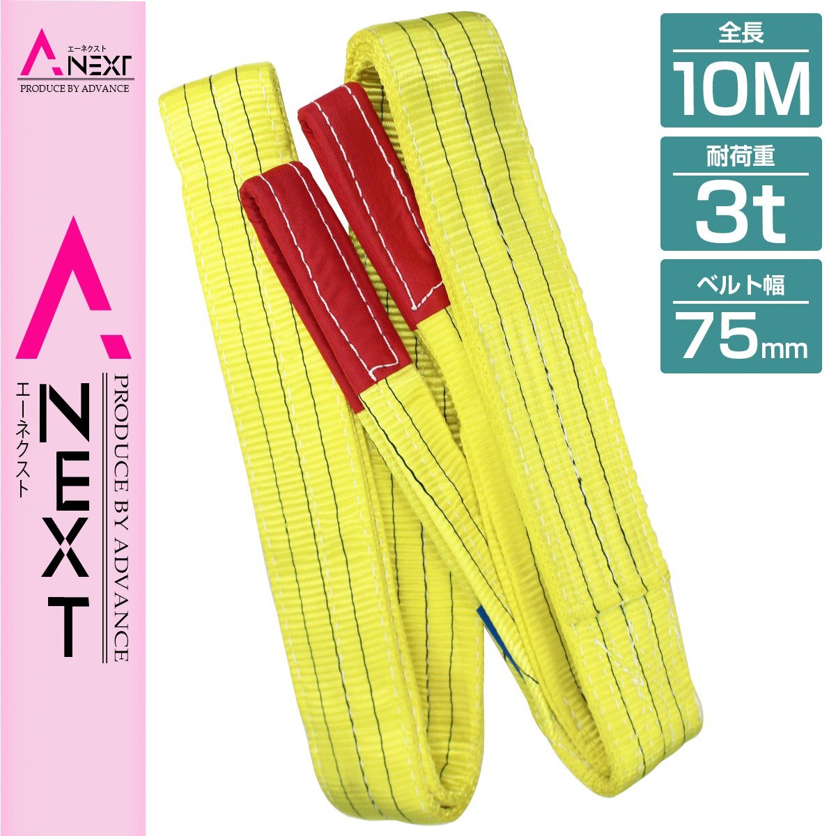 [1本/耐荷3t/長さ 10m] スリング ベルト 吊上げ ナイロン クレーン ロープ 荷吊り 玉掛け 牽引 運搬 3000kg 3トン 幅75mm