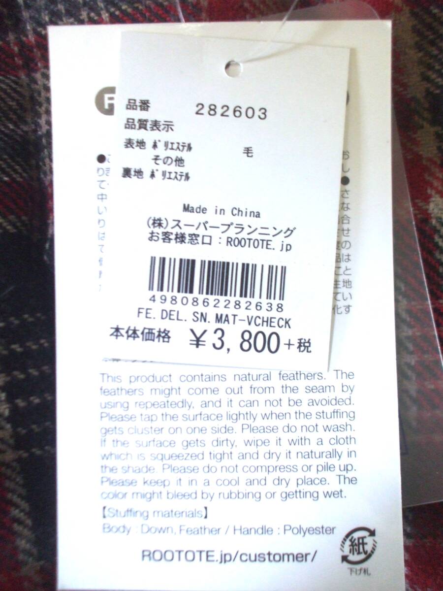 新品・3800円+税◆羽毛入りのトートバッグ★ポケット付きで両手暖か・ルートート・ROOTOTE