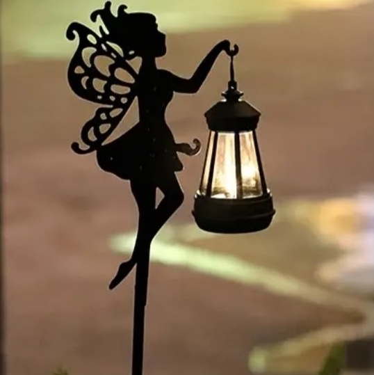 かわいい妖精さんモチーフのアイアン製スタンド付きソーラーライトです