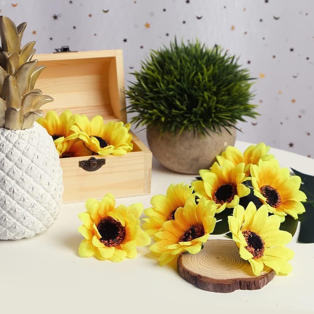 siawadeky ミニ ひまわり 造花 100個セット 直径7cm ヒマワリ ヘッド 枯れない花 シルクフラワー DIY花材 インテリア造花 ホーム テーブル 花飾り 造花アート 結婚式 パーティー デコレーション 写真小道具
