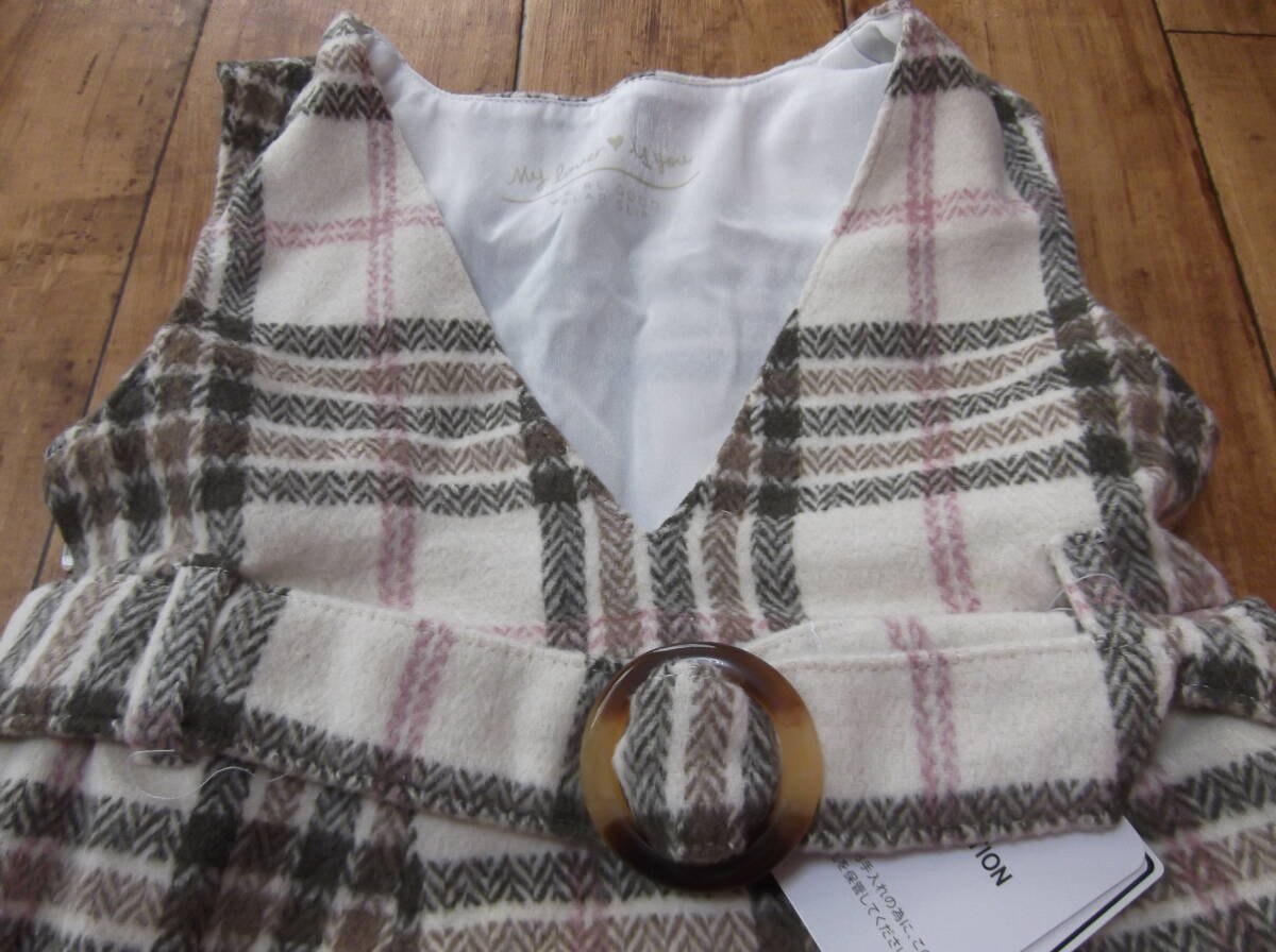 ★新品未使用★SLAP SLIPスラップスリップ(BEBE)/チェック柄ベルト付ジャンパースカート/120サイズ/アイボリー