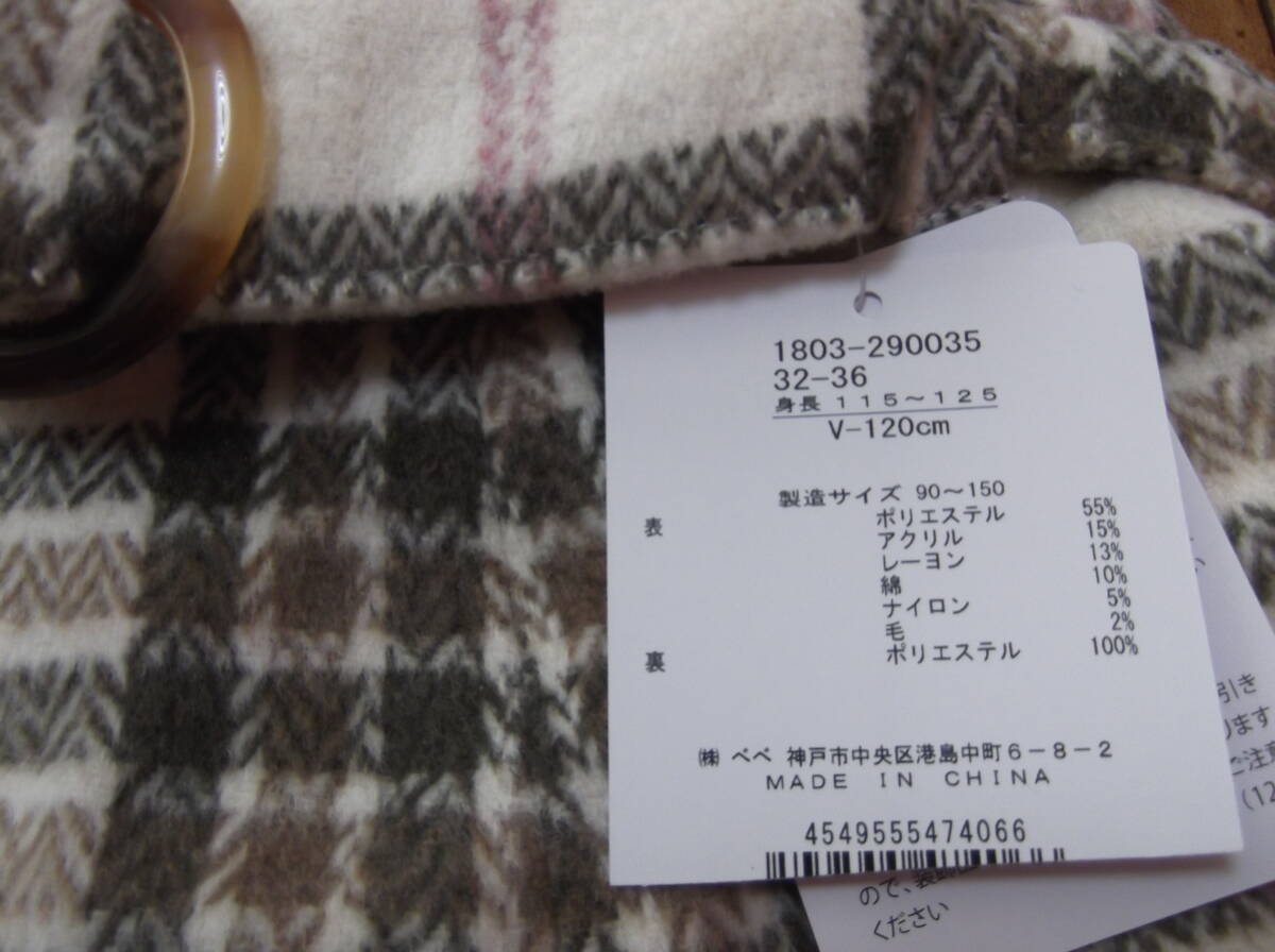 【素材】ポリエステル55%、アクリル15%、レーヨン13%、綿10%、ナイロン5%、毛2%