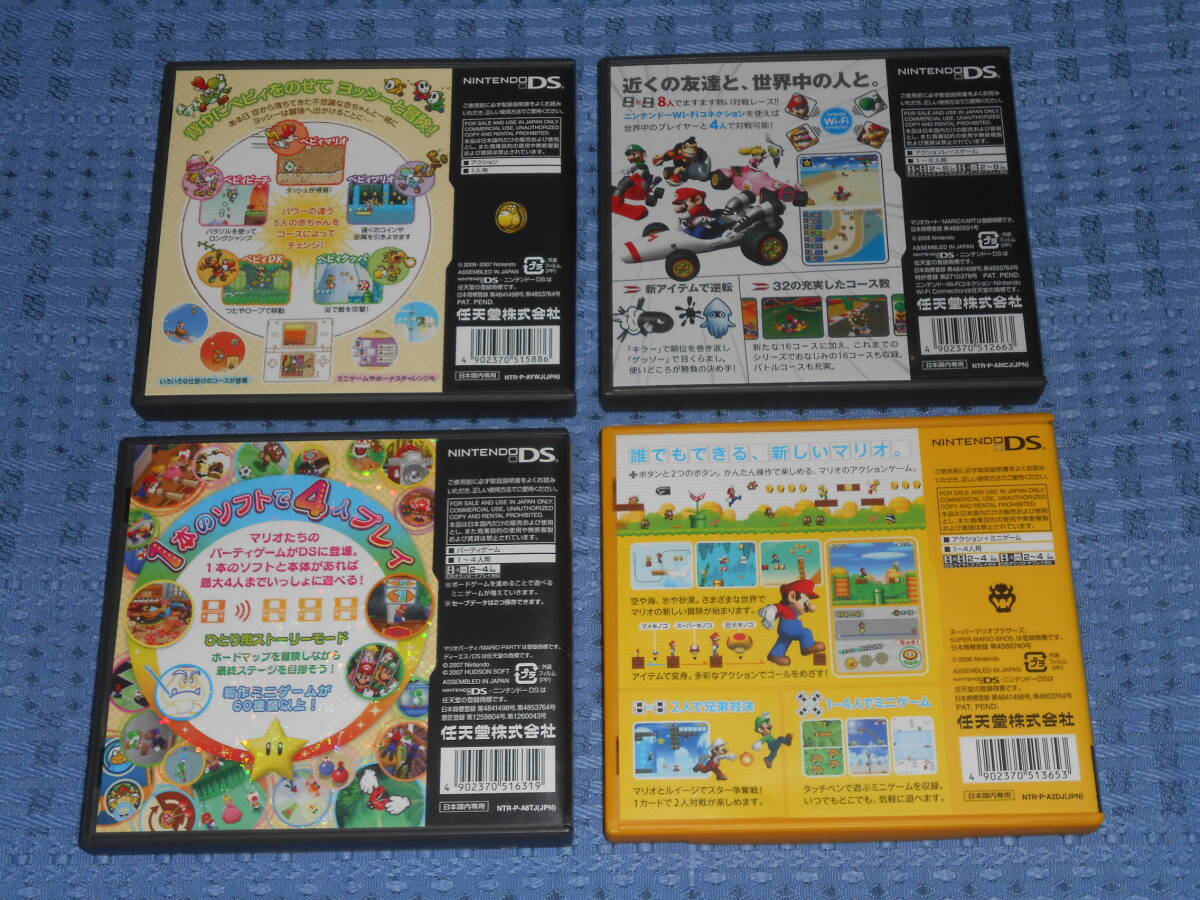 | ニンテンドーDSソフト「ニュー・スーパーマリオブラザーズ (New SUPER MARIO BROS.)」「マリオカートDS (MARIOKART DS)」「マリオパーティDS (MARIO PARTY DS)」「ヨッシーアイランドDS」4本セット | |