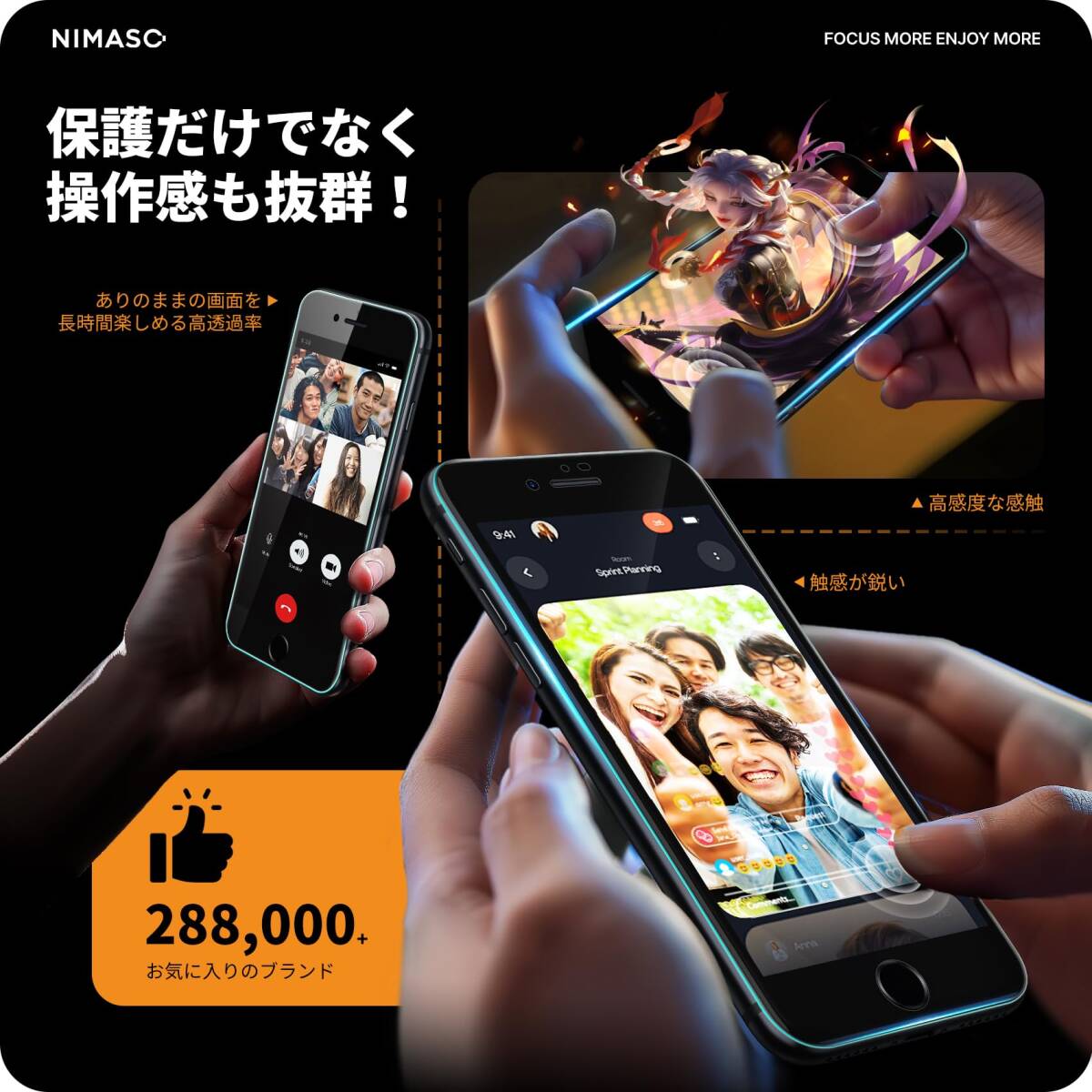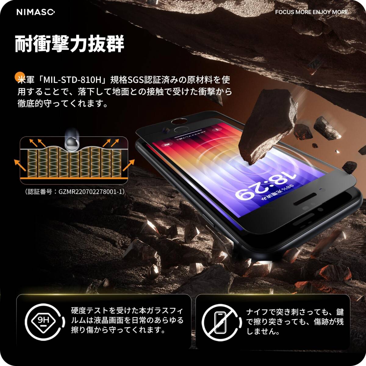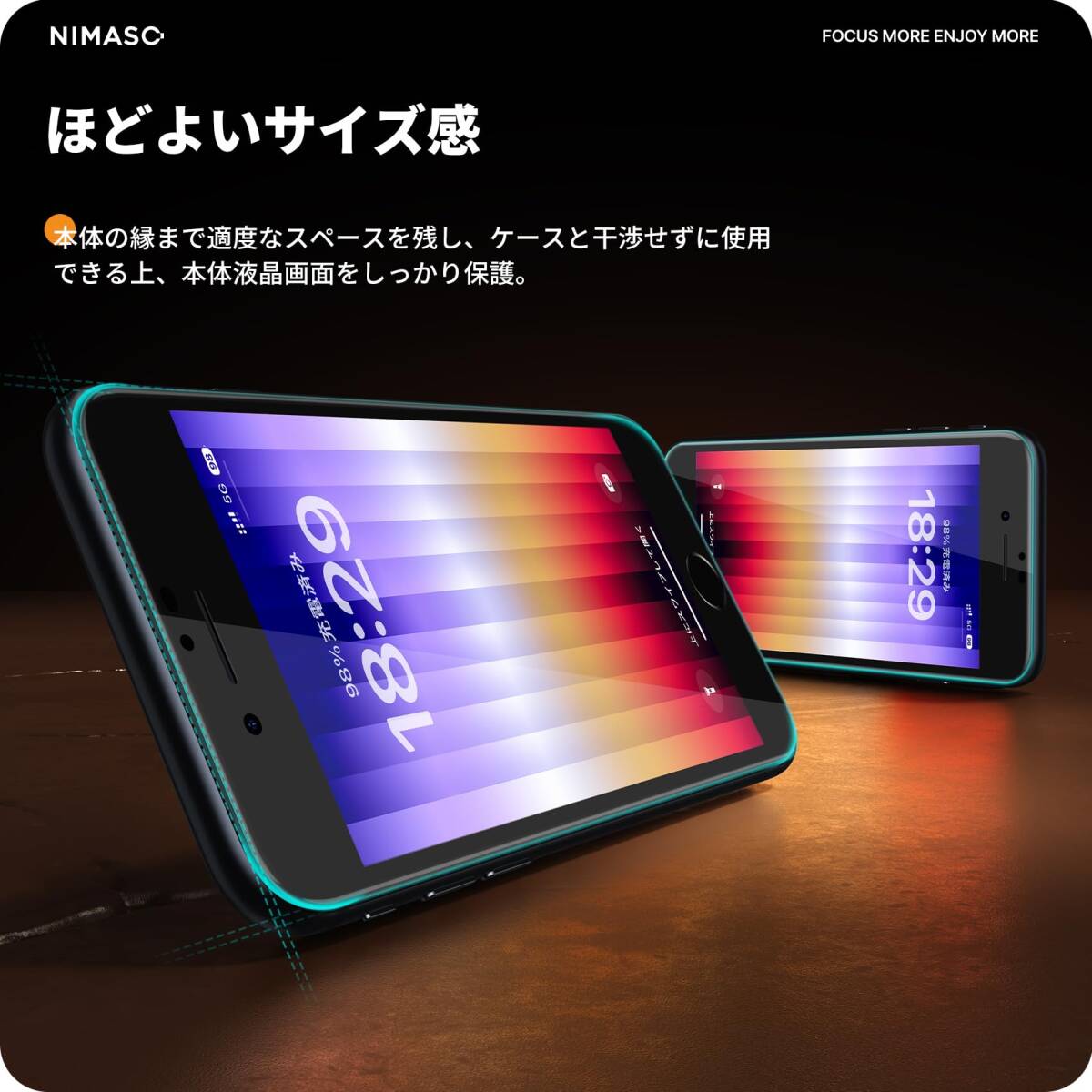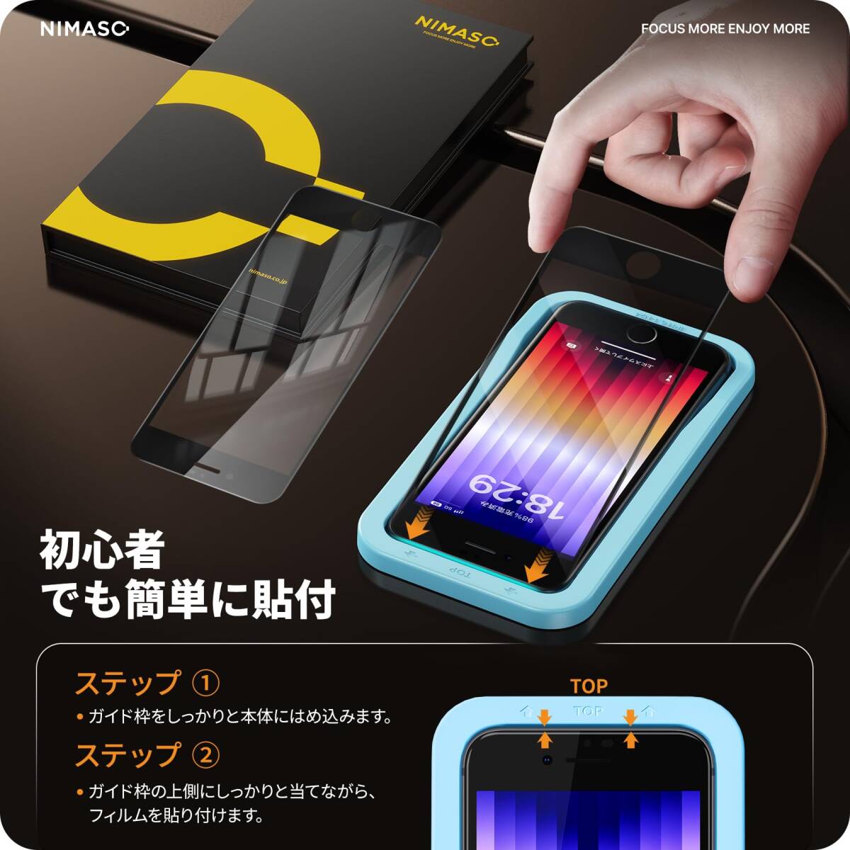 NIMASO ガラスフィルム iPhone SE 第3世代 (2022) / iPhone SE2/8/7 用 全面保護 フィルム フルカバー ガイド枠付き NSP19A23