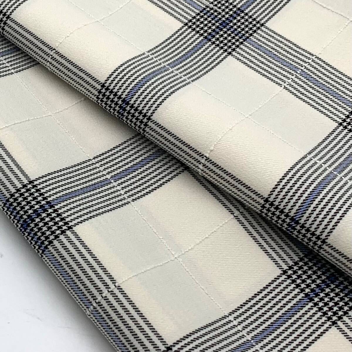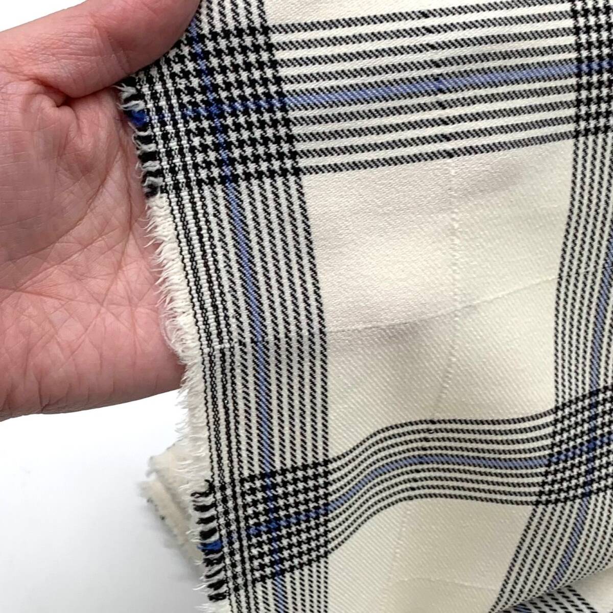 千鳥柄と斜めの線でチェック柄になっており、青い線が目を引くデザインかと思います。