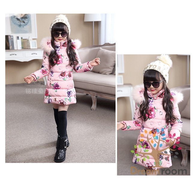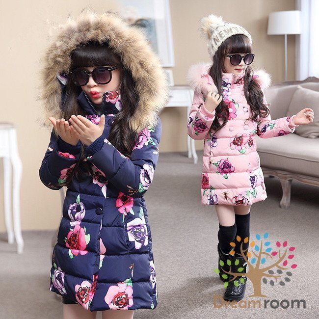 【140cm】 ダウンコート 花柄 フラワー ネイビー 子供服 アウター 女の子 中綿 ロングコート 韓国子供服