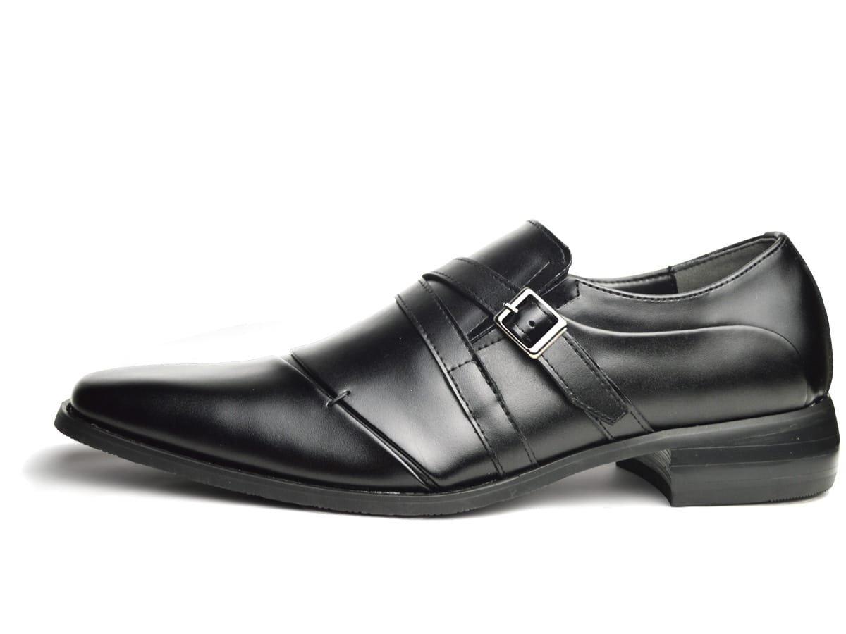 ビジネスシューズ 革靴 サイドゴア スリッポン Wモンク 脚長 スクエアトゥ ロングノーズ 2E 日本製 フォーマル 紳士靴 nc902