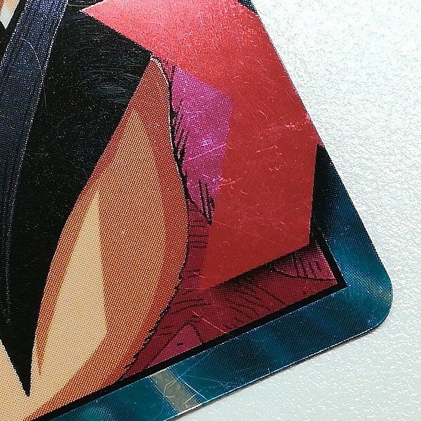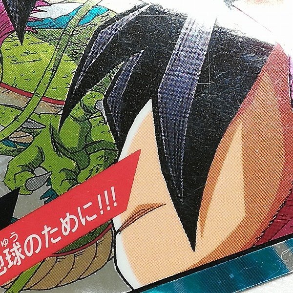 | ドラゴンボールGT スーパーバトル 19弾『No.01 勝つ!!地球のために!!!』孫悟空 メタル隠れプリズム オモテ面の左上角に粘着の弱まりが見られます。 ※11枚目以降の画像はこちらでご覧になれます。 |