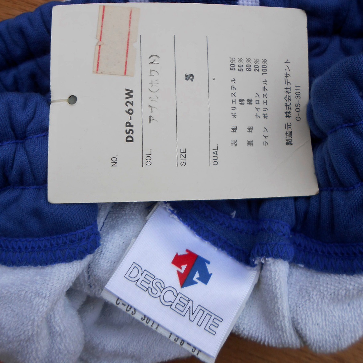 | 商品説明 | ’80s DESCENTE 女子ニットショーツ ( 株式会社デサント ブルマ ) MADE IN JAPAN ( 日本製 ) 『 エステル×コットン混ストレッチスポーツウエアブルマ生地 ( 通常スポーツウエアブルマオンス ) 、サイドテーピングライン、左前パッチ 等 』 品番 【 DSP-62W 】 サイズ表示 【 S 】 ( 下記の実寸サイズを参考にして頂ければ幸いです ) 品質表示 【 表地 : ポリエステル 50% 綿 50% 、 裏地 : 綿 80% ナイロン 20% 、 ライン : ポリエステル 100% 】 【 実寸サイズ ( 約 & 素人寸法ですが ) 】 ウエスト : ~ 70cm サイド丈 : 15.5cm 【 カラー ( 使用色 ) 】 アブル × ホワイト 【 コンディション 】 未使用 ( デッドストック ) です。 各画像どおり、ストック時の微シワ感を確認できますが、全く問題ないレベル ( 優良コンディション ) だと思います。 宜しくどうぞお願い致します。 ![]() | |