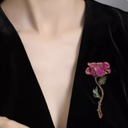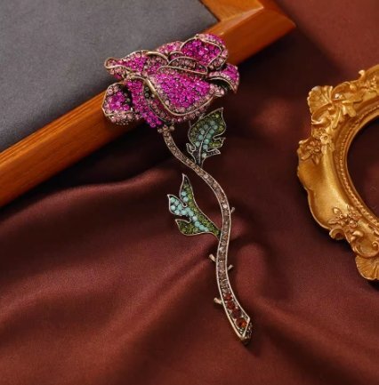 バラのブローチ長い枝花がいっぱい入った贅沢なブローチ高級アクセサリーラインストーン花ブローチ