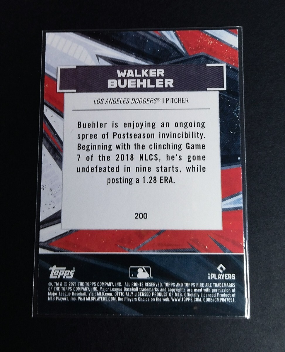 MLB 2021年topps fire ウォーカー・ビューラー(ドジャース) No,200。※表面左上下、カド、少しのダメージあり(画像3、4)Dodgers WALKER BUEHLER