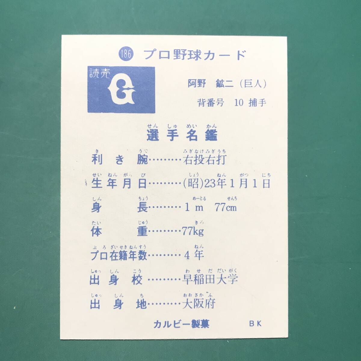 1973年 カルビー プロ野球カード 73年 186番 巨人 阿野  WWC38