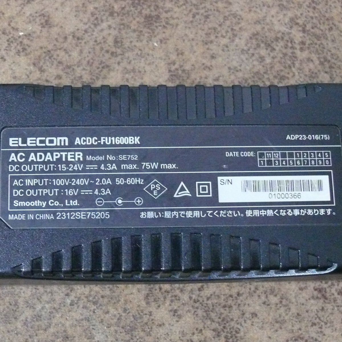 | 型番 | ACDCFU1600BK FUJITSU16V対応ノートPC用ACアダプタ |