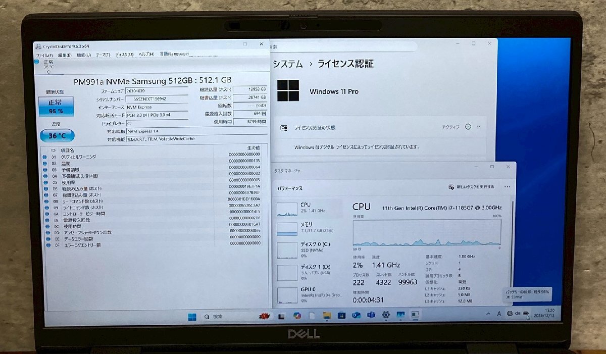 | ライセンス確認 | 〇 | CrystalDiskinfo | 〇 |