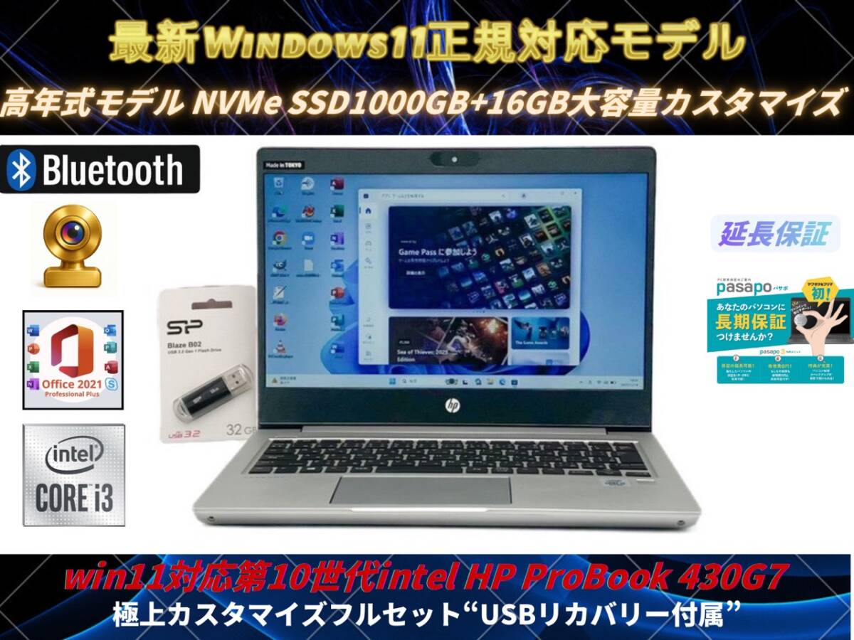 2020年製 NVMe SSD1TB(1000GB) 第10世代intel メモリ16GB 人気HP ProBook 430G7 美品 Windows11Pro25H2 Office2021 Wi-Fi ノートパソコン