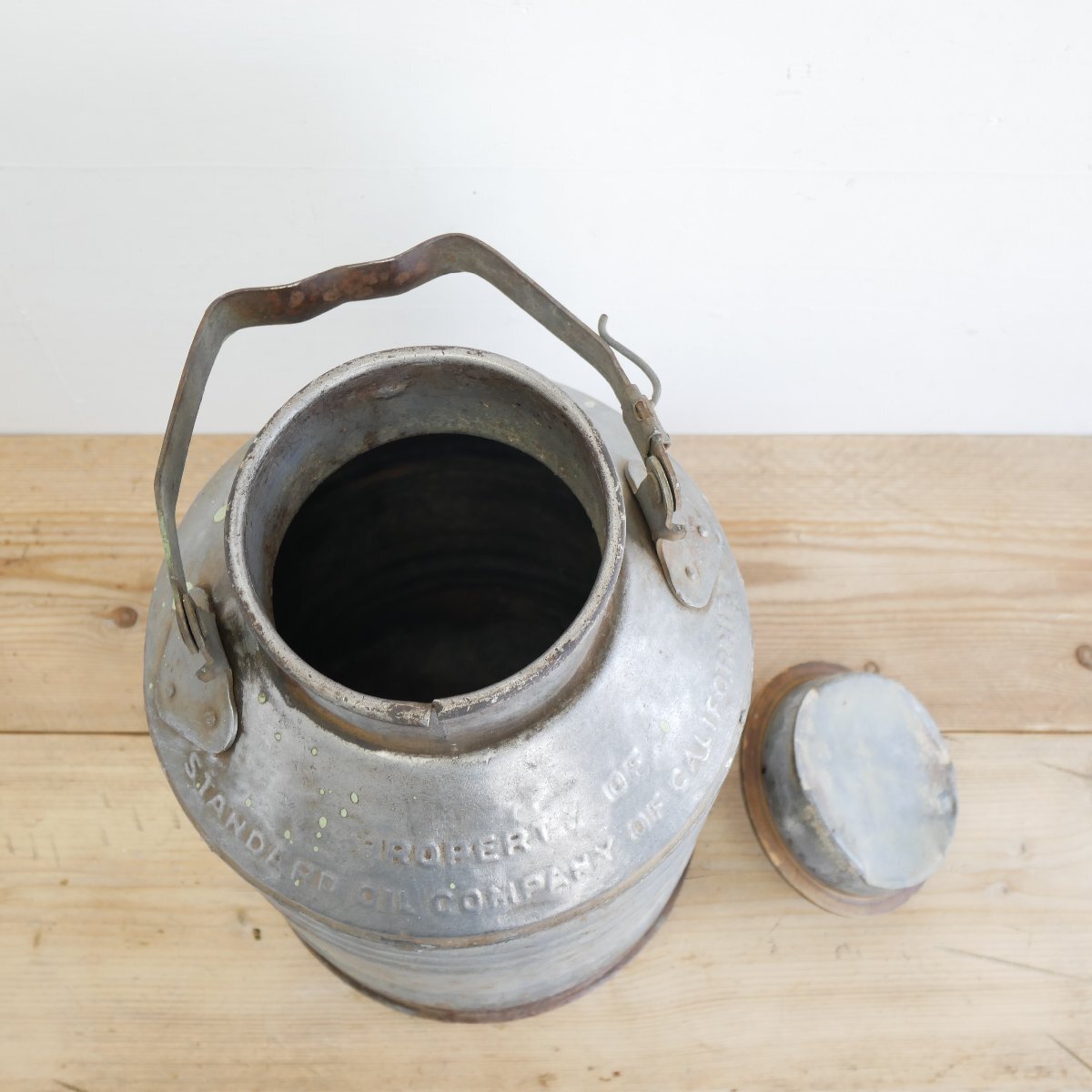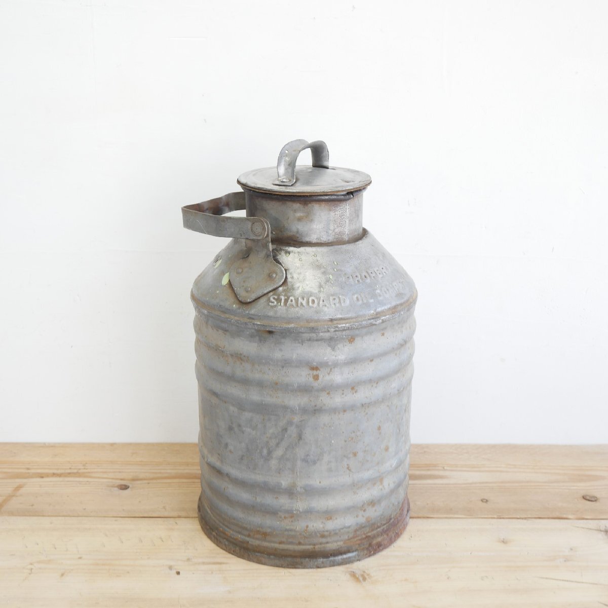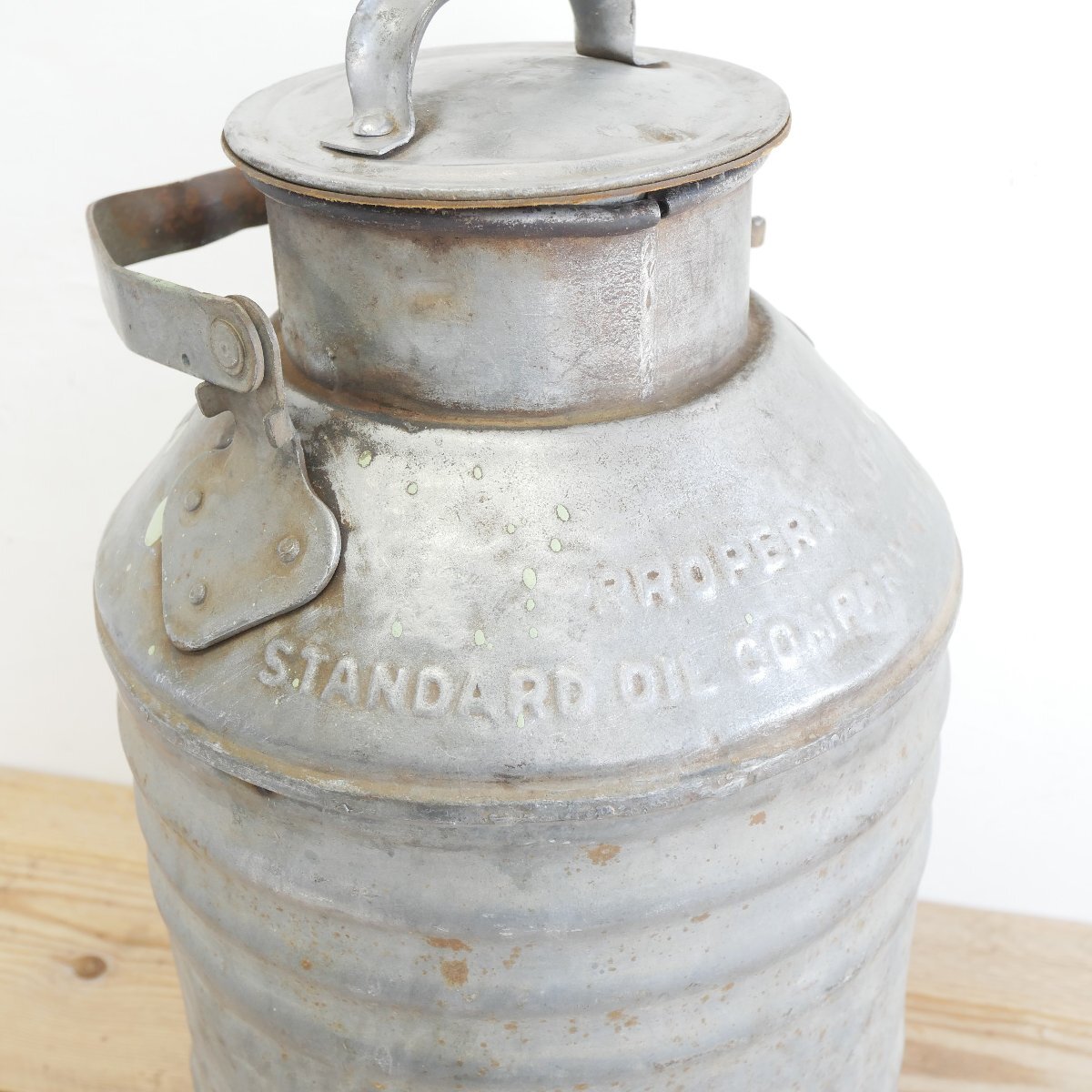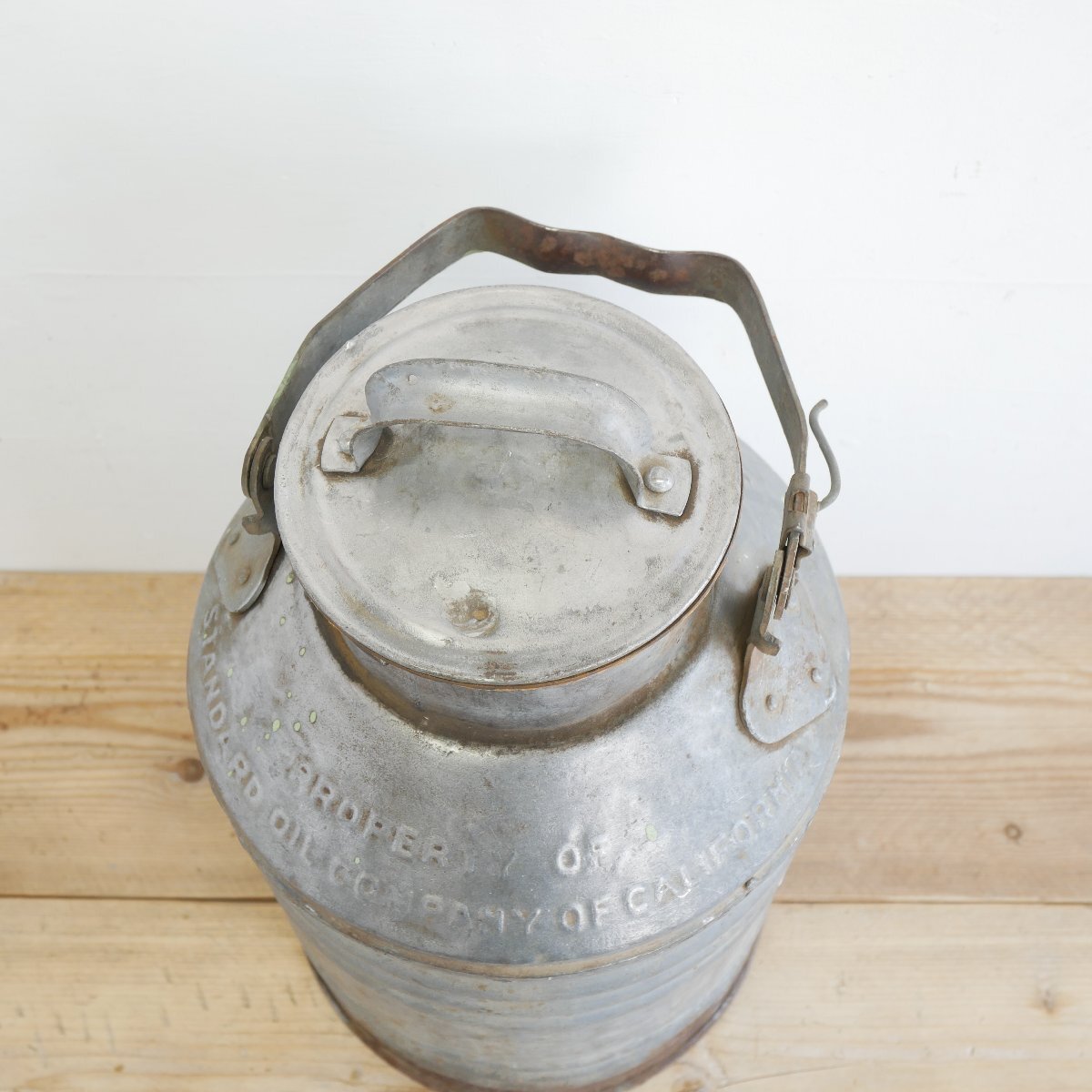 | 商品説明 explanation | カリフォルニア州にある「STANDARD OIL COMPANY」のモーターオイル缶です。 5ガロン(約19リットル)が入る容器で、エンボス文字があり、とてもいい雰囲気です。 ガレージなどのディスプレイ小物にいかがでしょうか。 |