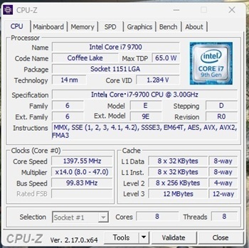 Intel SRG13 Core i7-9700 3.0 GHz オクトコアプロセッサー