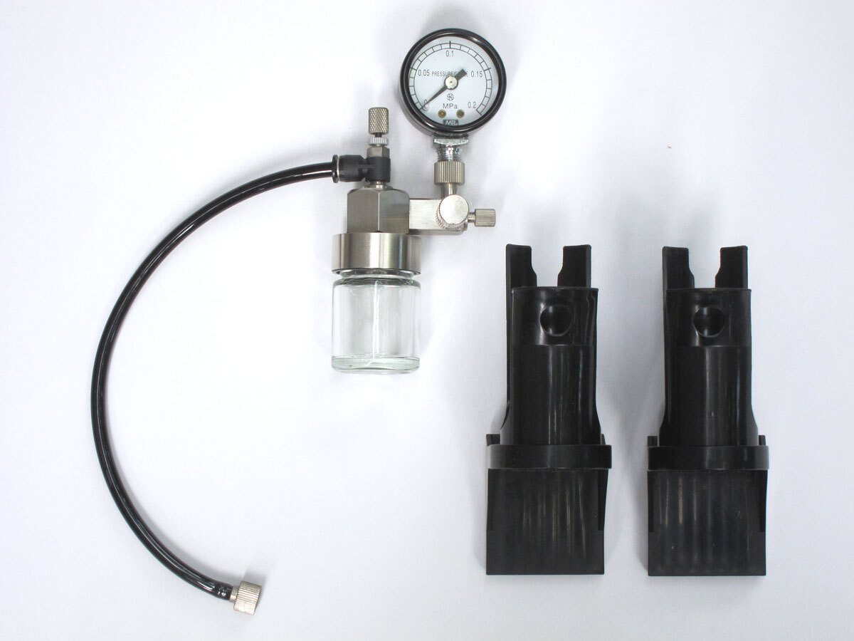 コンプレッサーは2014年12月に新品を購入して数回使用しただけですので、外装に目立った傷や使用感なく状態は良いです。動作も問題ありません。付属品は全てそろっています。エアーレギュレーターは水抜きビンの中にセットするスポンジがありません。メーカーに注文されるか、ティッシュペーパー等を詰めてご使用ください。商品の詳細は、メーカーHPをご覧ください。