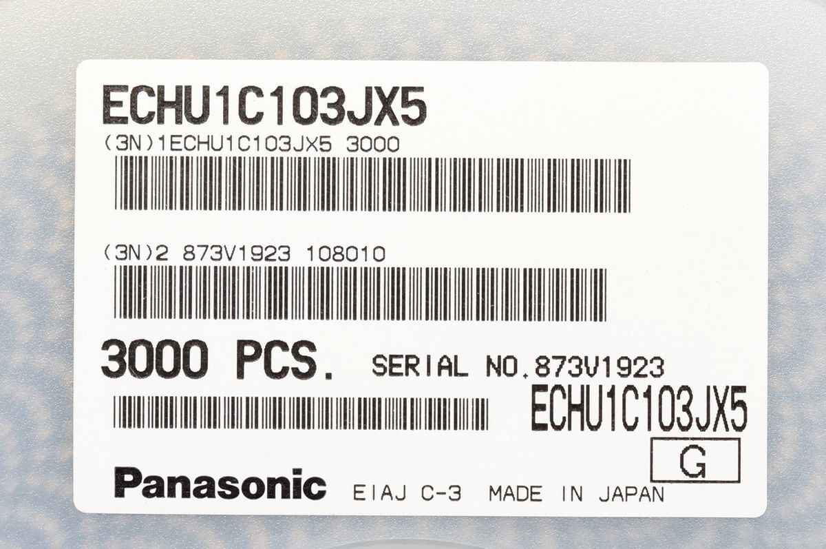 Panasonic チップ型積層メタライズ PPS フィルムコンデンサ ECHU1C103JX5です。